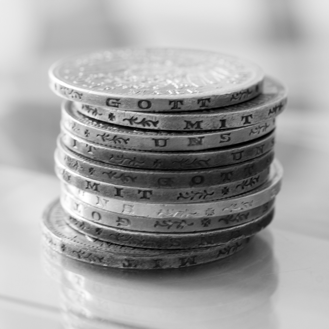Heutzutage begegnen uns im Wechselgeld ausschließlich Münzen aus unedlen Metallen: Die kleinen Cent-Münzen bestehen aus Stahl mit einer Kupfer-Ummantelung. Für die großen Cent-Nominale kommt „Nordisches Gold“ zum Einsatz, das aus Kupfer, Aluminium, Zink und Zinn besteht. Und die Bimetall-Münzen bestehen aus Nickel-Messing und Kupfernickel. Zahlungsmittel aus Gold und Silber wären heutzutage undenkbar – doch noch vor nicht allzu langer Zeit fanden unsere Vorfahren silberne und goldene Münzen in ihren Geldbörsen vor.