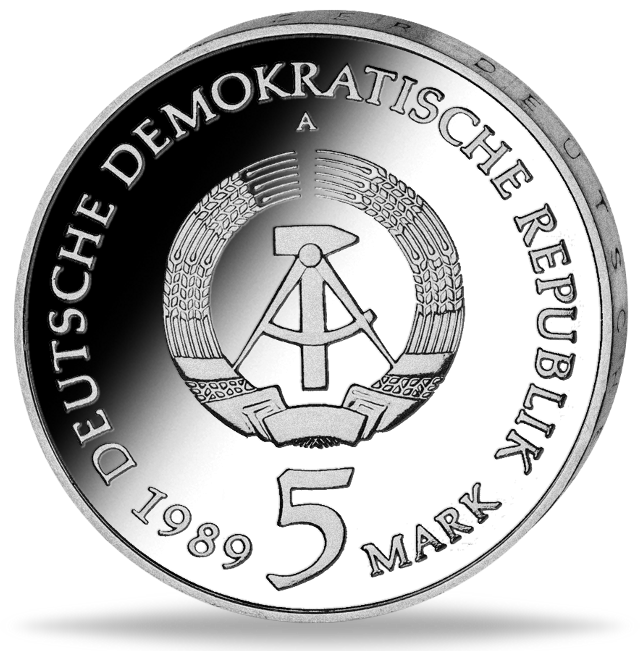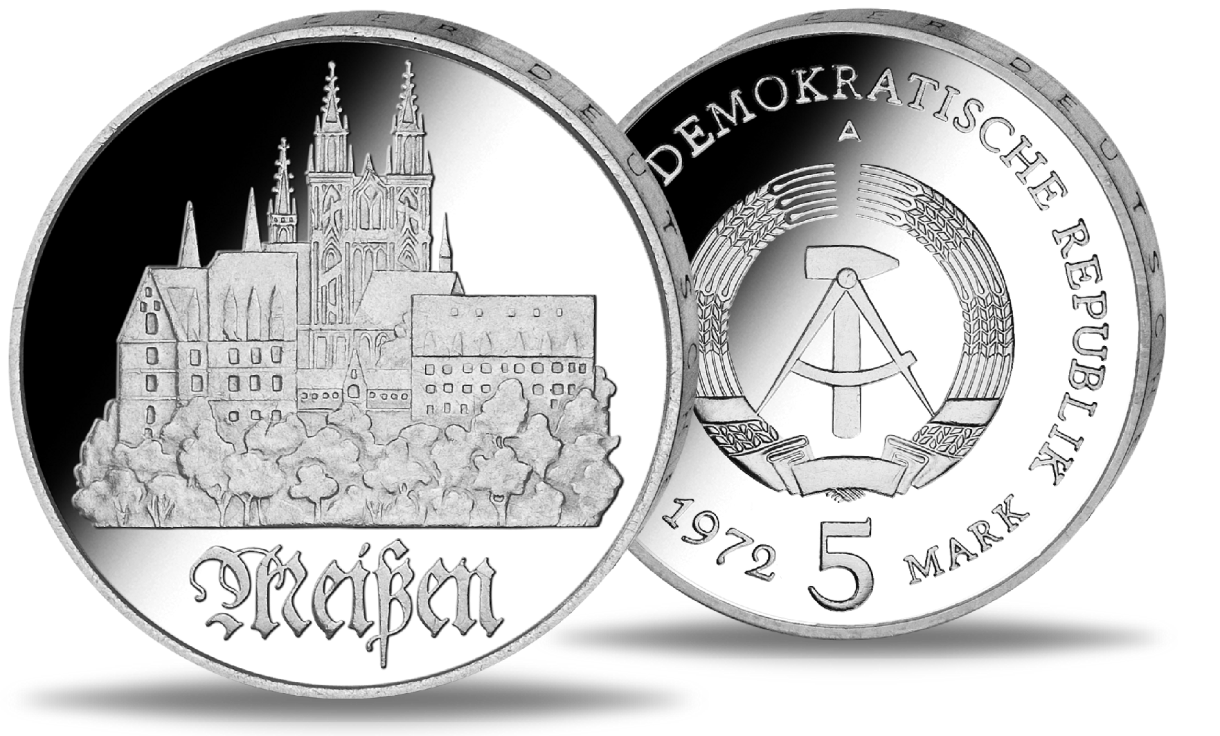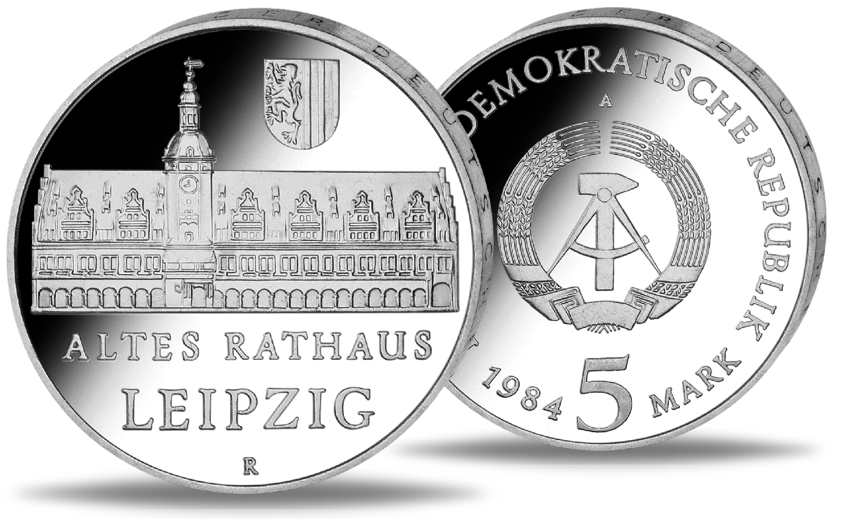 Die 5- und 10-Mark-Gedenkmünzen wurden aus Silber und Neusilber geprägt und befinden sich alle in der Top-Erhaltung „Stempelglanz“. Die Rückseiten aller Münzen tragen das historische Staatswappen der DDR – mit Ährenkranz, Hammer und Zirkel als Sinnbild für Landwirtschaft, Arbeiterschaft und die republikanische Idee.