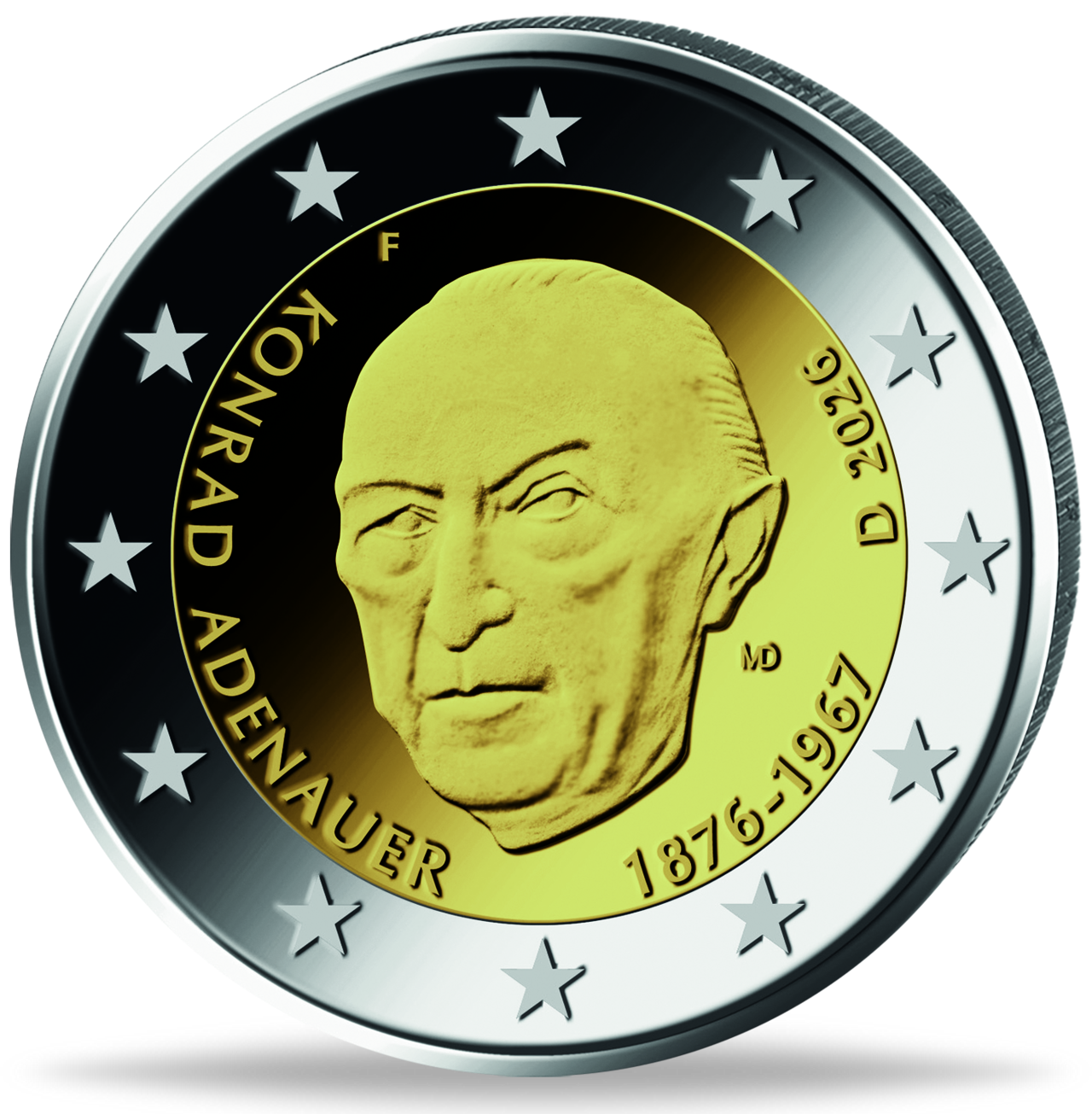 Mit der 2-Euro-Gedenkmünze „Konrad Adenauer“ ehrt Deutschland im Jahr 2026 eine der prägendsten Persönlichkeiten seiner Geschichte. Zum 150. Geburtstag des ersten Bundeskanzlers würdigt die Münze Deutschland den Mann, der nach den Schrecken des Zweiten Weltkrieges die Grundsteine für Demokratie, Freiheit und europäischen Zusammenhalt legte. Sie ist die zweite Ausgabe der eindrucksvollen 2-Euro-Serie „Einigkeit und Recht und Freiheit“, die jährlich großen Gestalten deutscher Geschichte ein numismatisches Denkmal setzt.