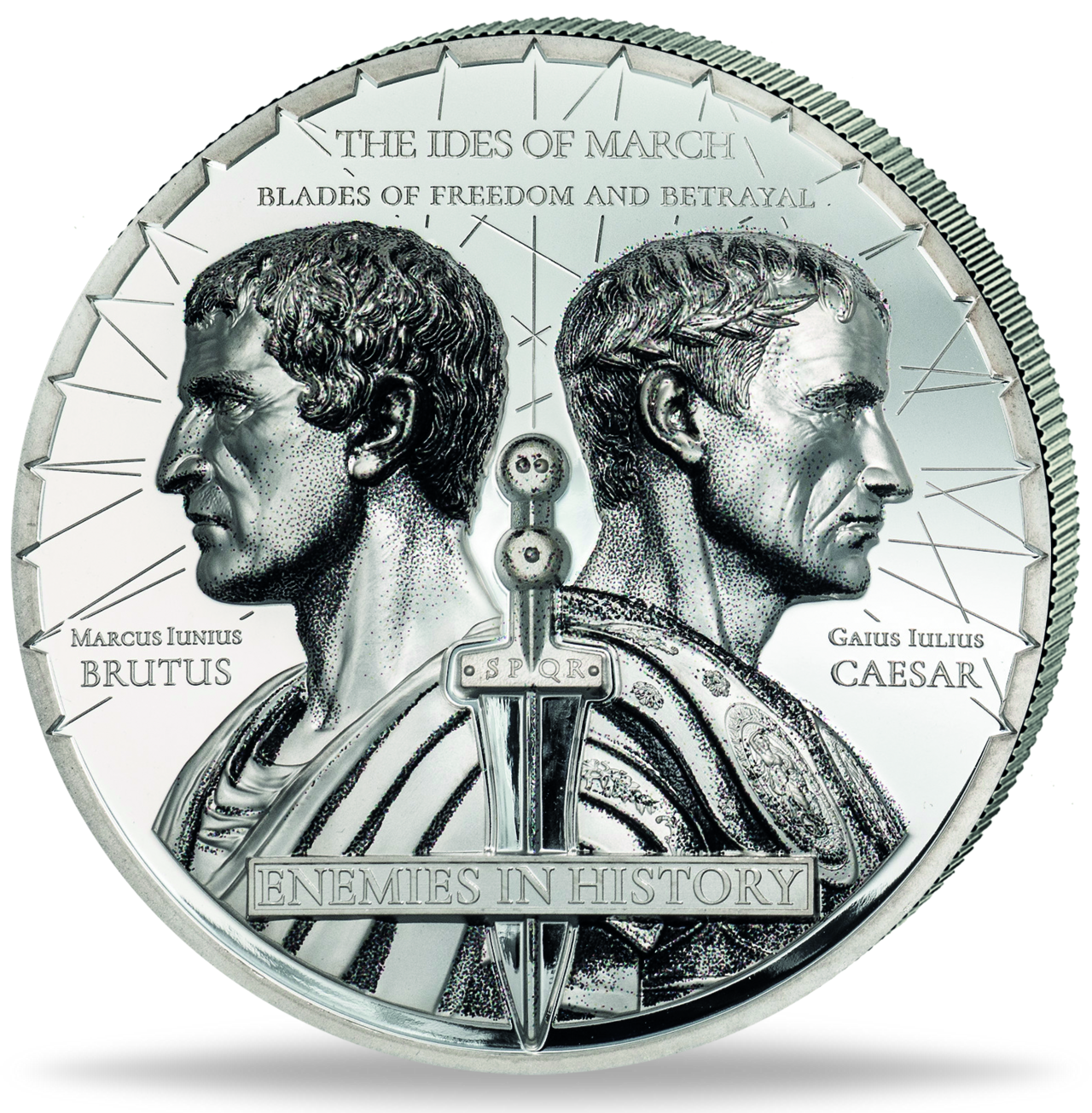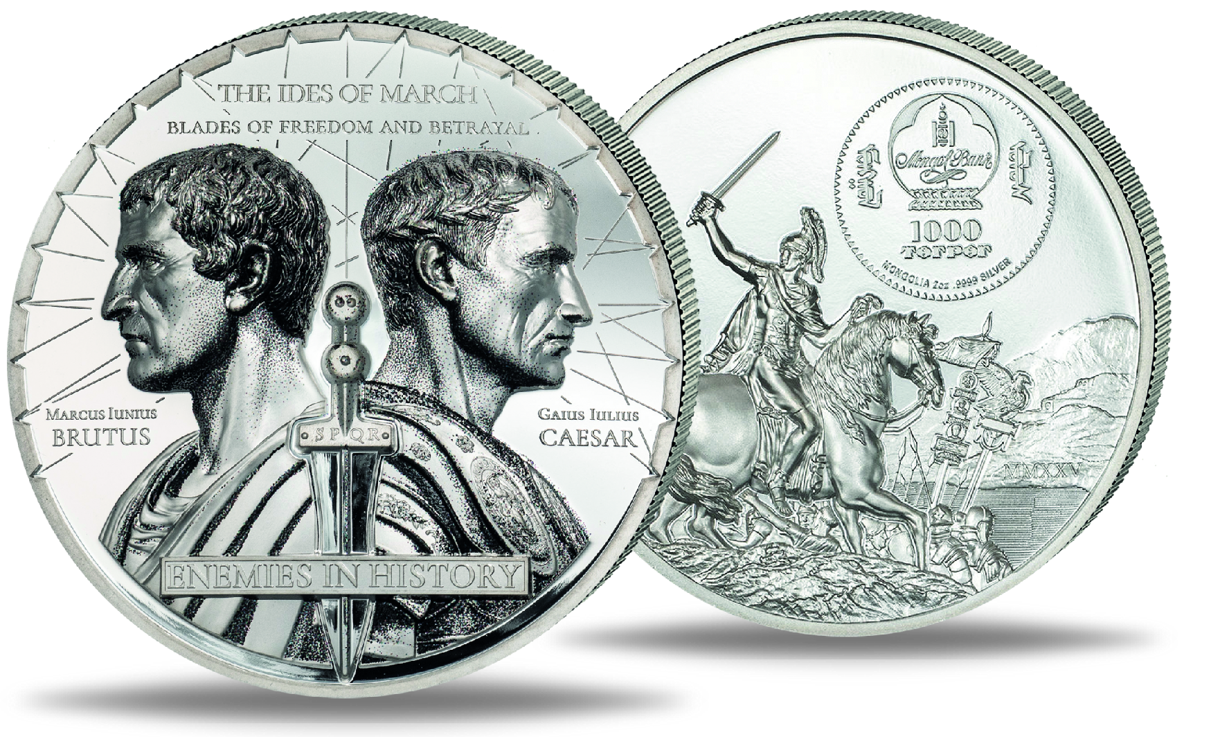 Produktinformationen "Mongolei, 1.000 Togrog 2025, „Caesar vs. Brutus“, High Relief - 2 Unzen Silber"