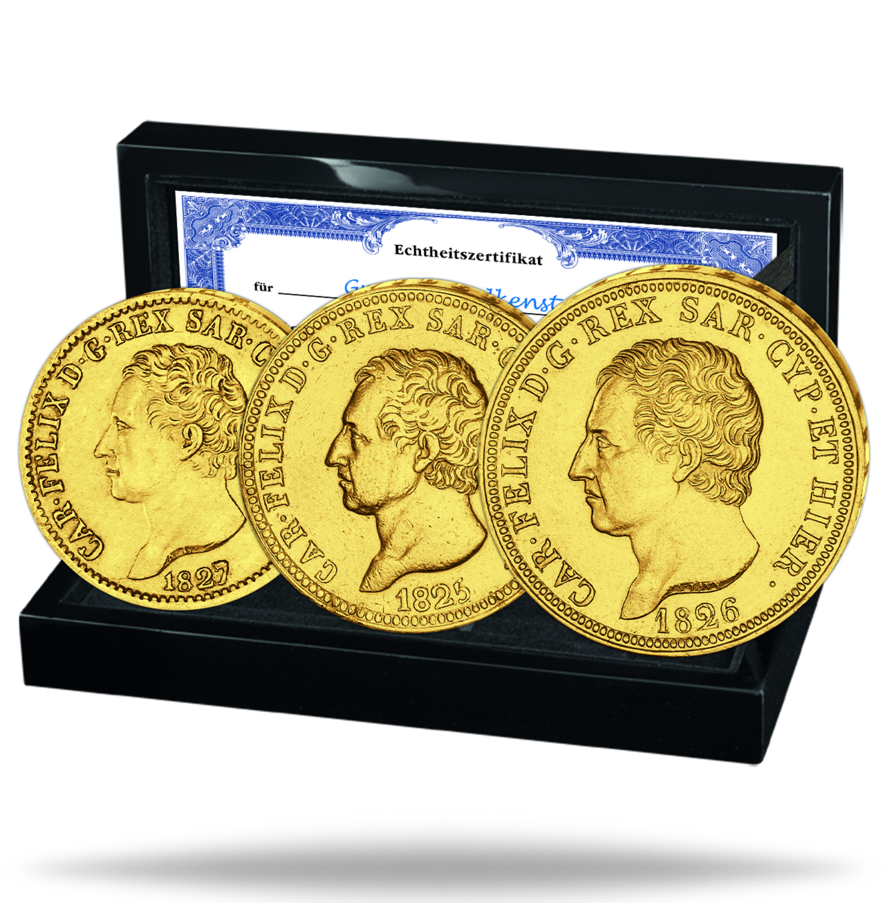 Produktinformationen "Königreich Sardinien, Gold-Satz (3 Mz.) Carlo Felice (Karl Felix) - Gold"