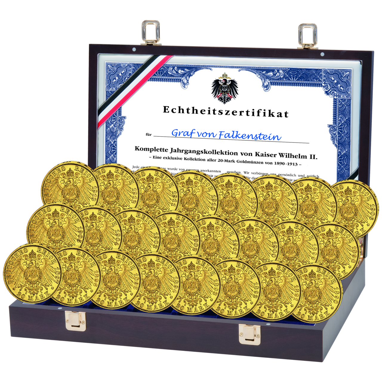 Produktinformationen "Königreich Preußen, Jahrgangskollektion 20 Mark 1890-1913 (24 Münzen) Kaiser Wilhelm II. - Gold"
