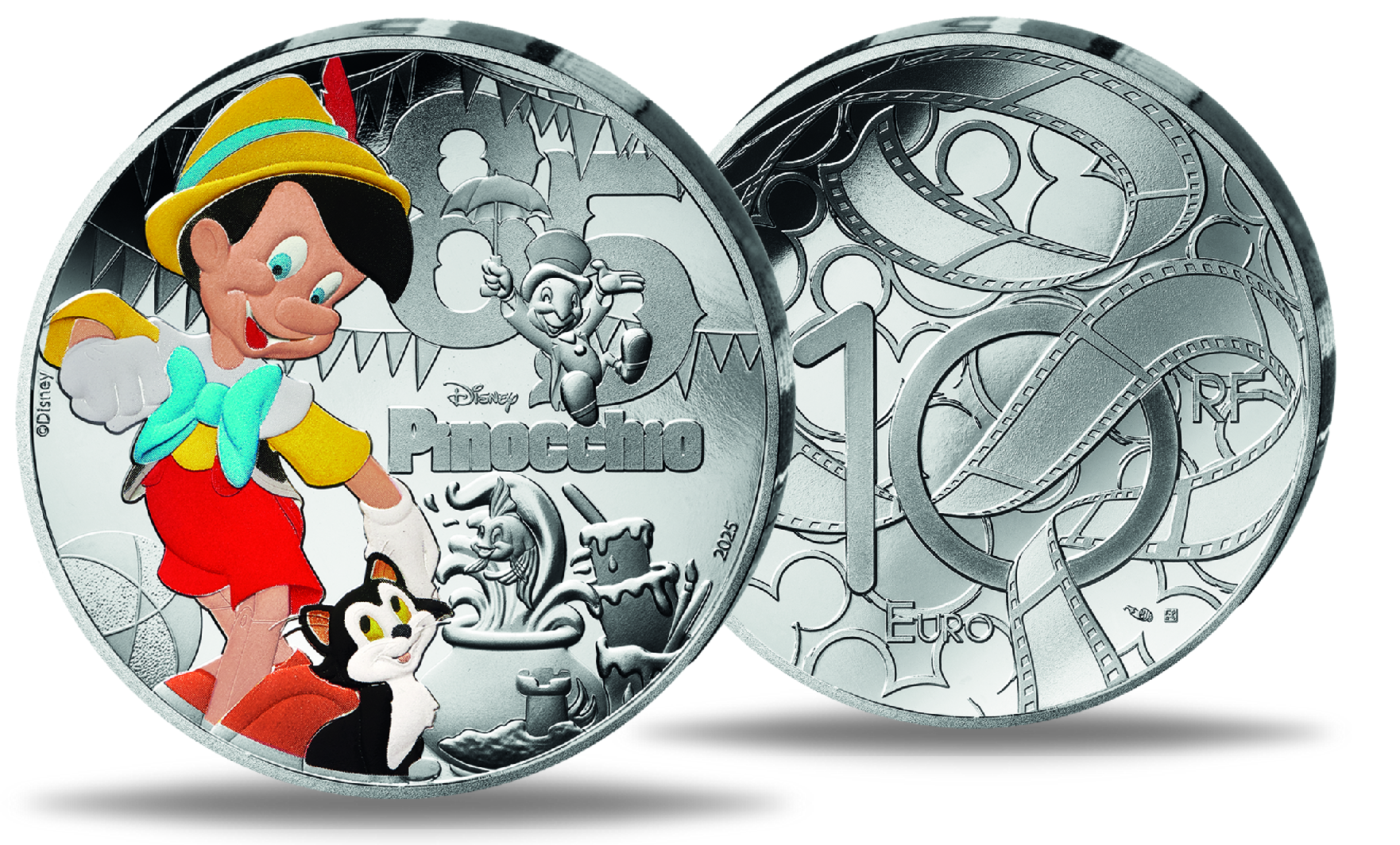 Produktinformationen "Frankreich, 10 Euro Pinocchio, 2025, reines Silber, mit Farbapplikation, PP, im Etui"