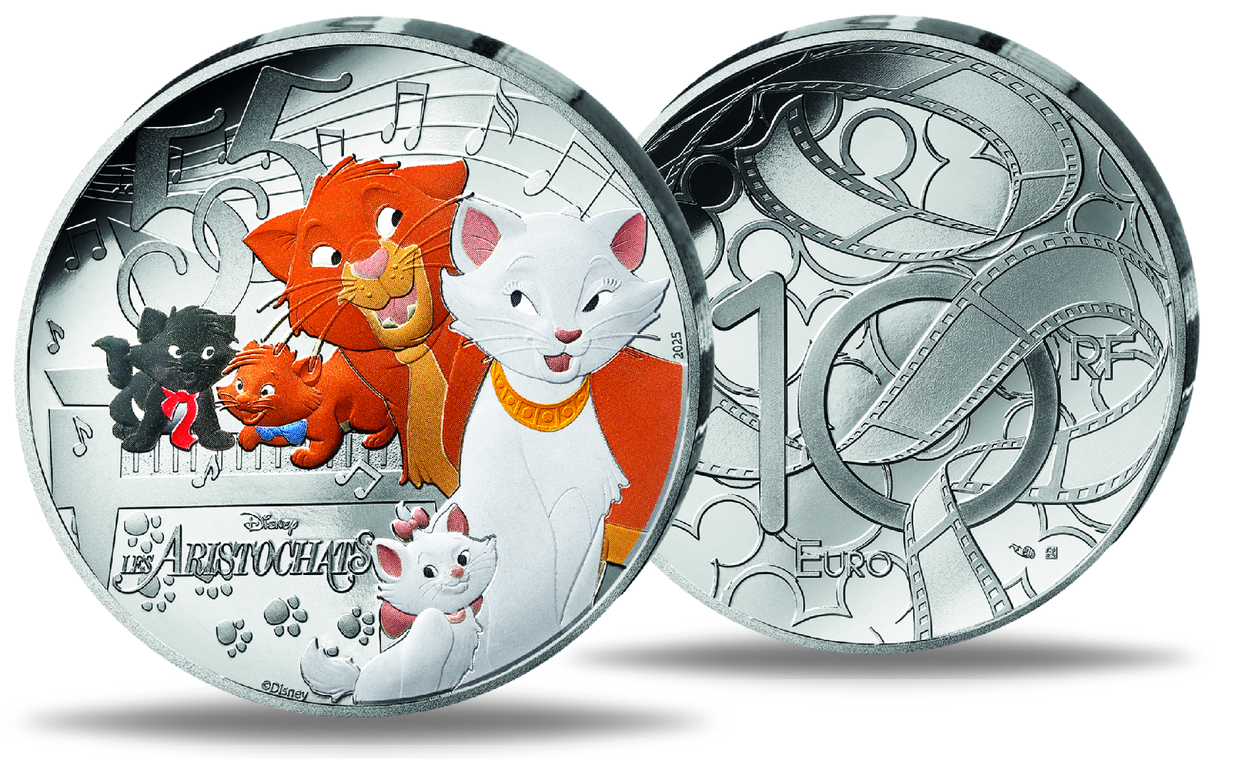Produktinformationen "Frankreich, 10 Euro Aristocats, 2025, Silber, mit Farbapplikation, PP, im Etui mit Zertifikat"