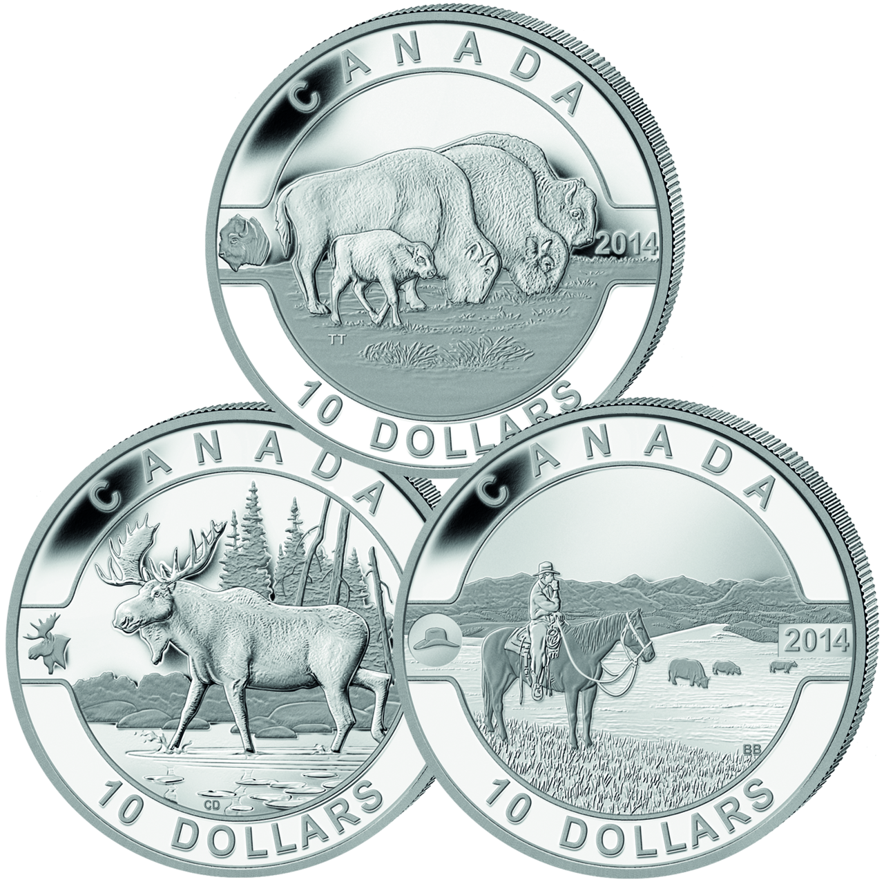Produktinformationen "Kanada, 3x 10 Kanadische Dollar, Elch, Bison, Cowboy - Silber"