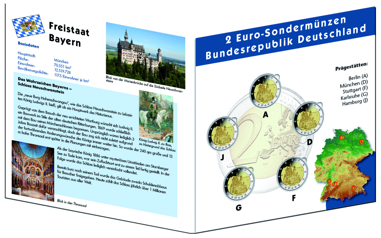 5x 2 Euro Schloss Neuschwanstein - alle 5 Prägestätten - im Sammelalbum