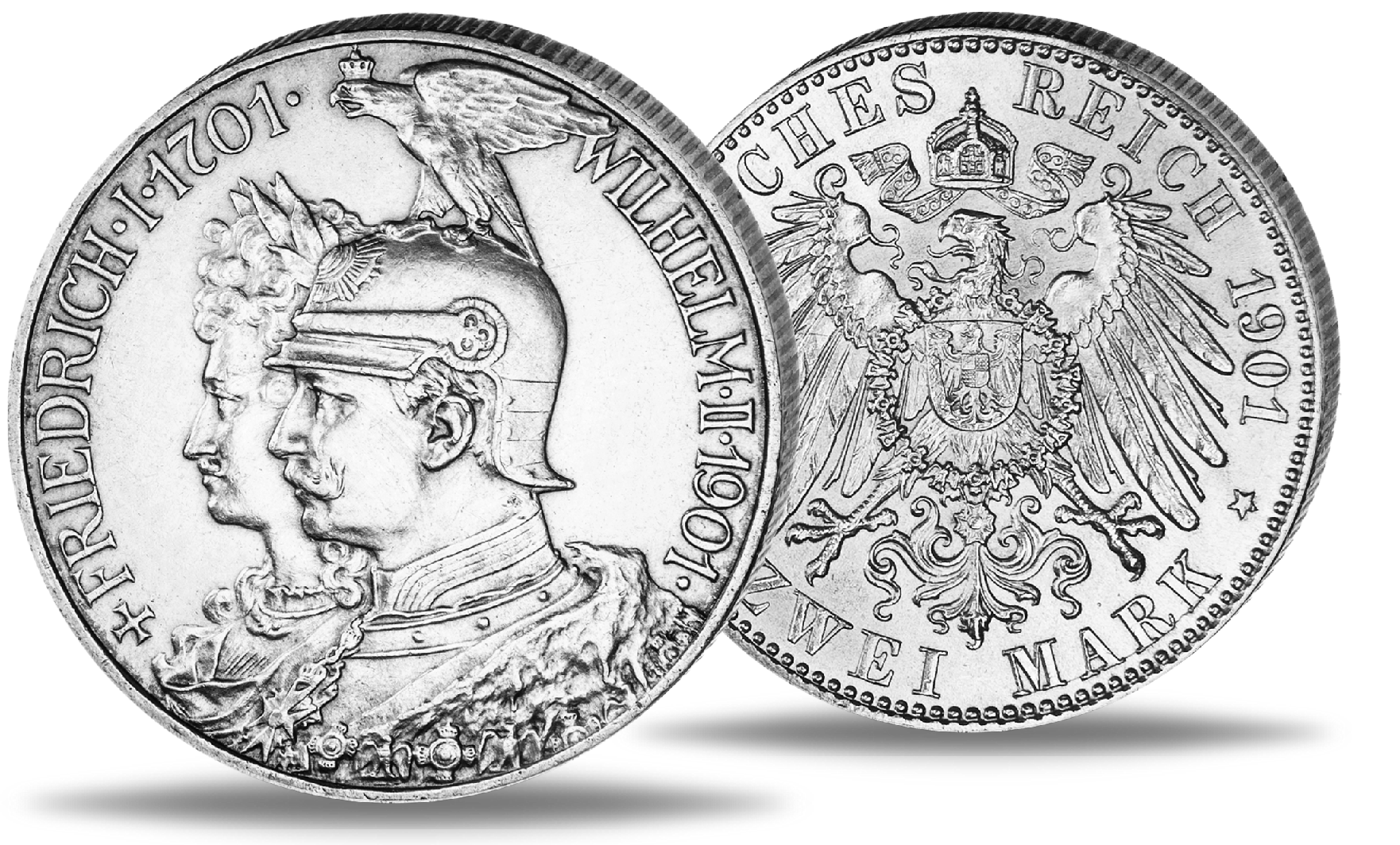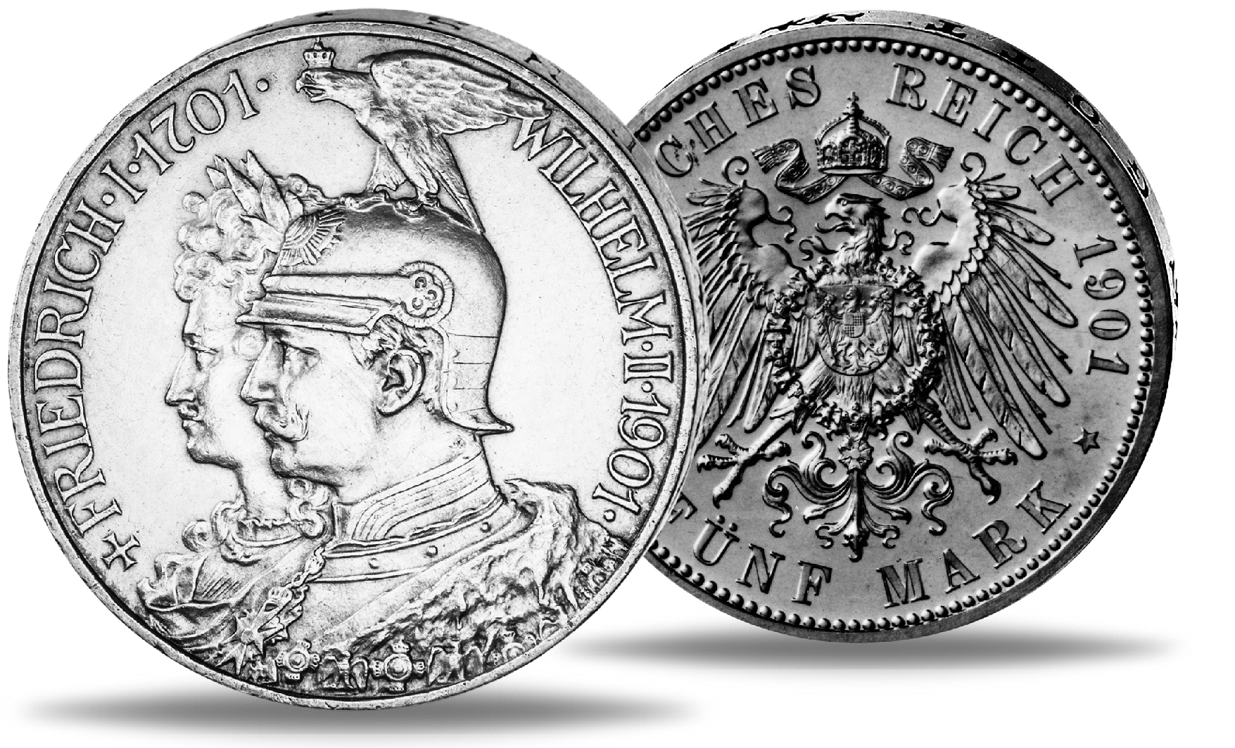 Königreich Preußen, Satz 2+5 Mark Preußen 1901 (J.105+106), 200 J. Königreich Preußen - Kaiserreich