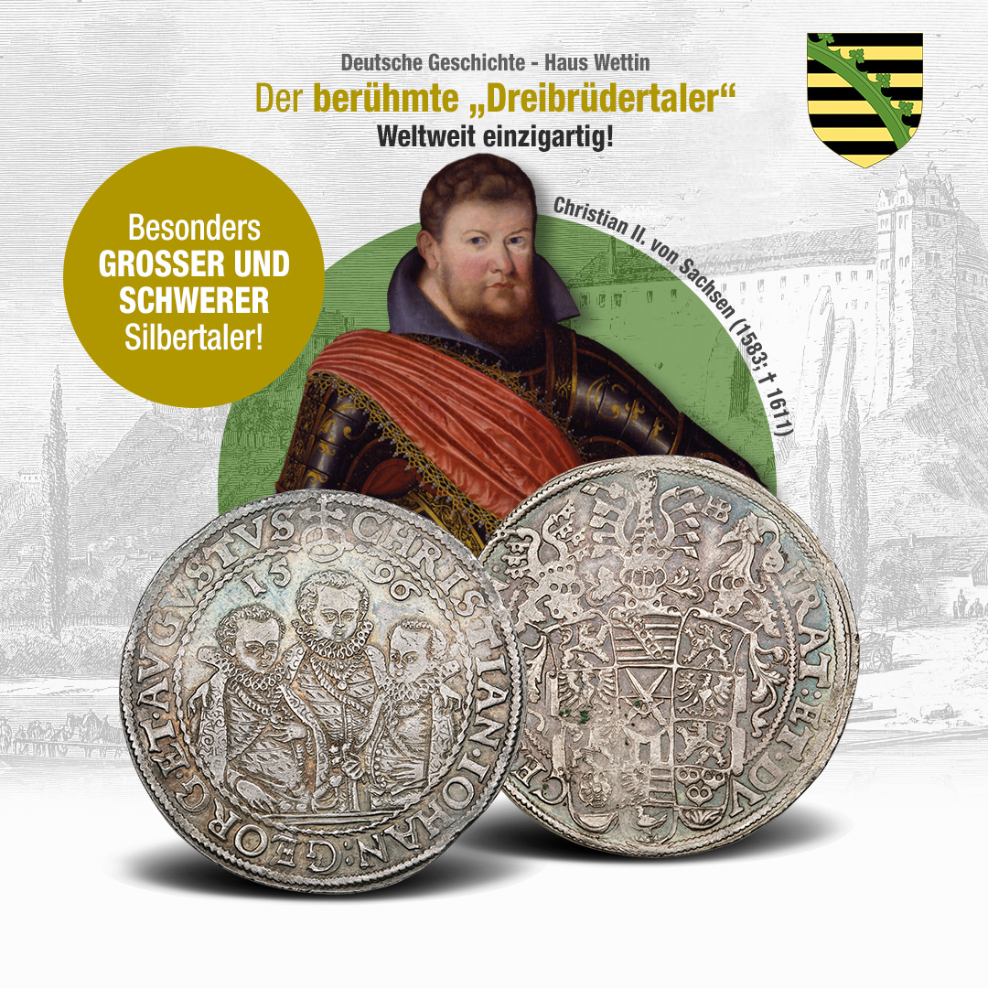 Der vor über 400 Jahren im Kurfürstentum Sachsen geprägte „Dreibrüdertaler“ ist in seiner Art in der Geschichte der Numismatik bis heute einzigartig. Zudem gilt diese besondere altdeutsche Prägung als Vorläufer zum „Achtbrüdertaler“ aus Sachsen-Weimar.