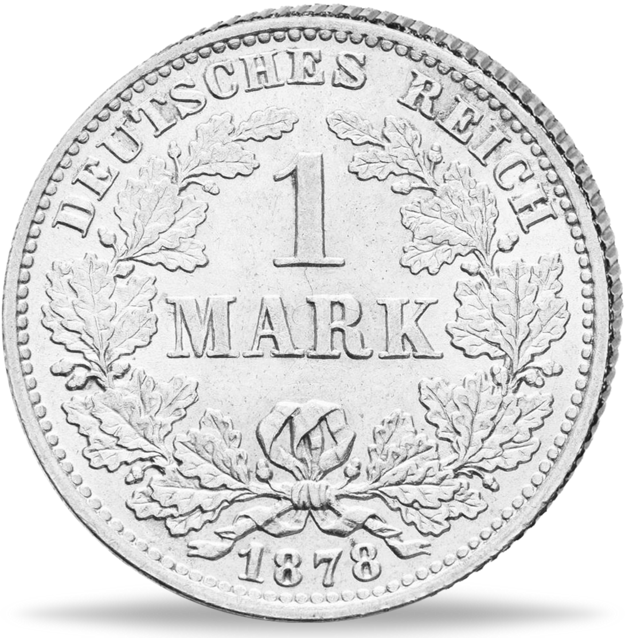 Die Vorderseiten der Münzen zeigen das Nominal „1 Mark“ im Eichenkranz. Der Eichenkranz wird vom Schriftzug „Deutsches Reich“ und der Jahreszahl eingefasst. Die Rückseiten zieren der kleine, gekrönte Reichsadler mit preußischem Wappenadler auf der Brust, eingerahmt von der Kette des schwarzen Adlerordens. Ihre große historische Bedeutung und der hohe Sammlerwert machen diese Münzen zu gesuchten Raritäten.