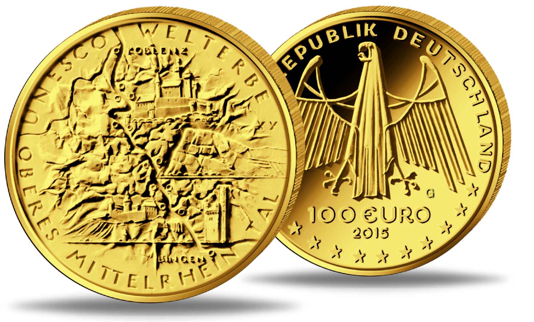 Die 100-Goldeuro-Münzserie zählt zu den beliebtesten deutschen Münzsammlungen. Jedes Jahr erscheint im Rahmen der Kollektion eine neue Ausgabe und zeigt die schönsten und bedeutendsten Kulturschätze der BRD. Die Ausgabe im Jahr 2015 zum Thema „Oberes Mittelrheintal“ ist die 14. Ausgabe der berühmten 100-Goldeuro-Serie. Sie zeigt ein wunderschönes und vielseitiges Motiv des sich von Koblenz bis Bingen erstreckende Oberen Mittelrheintals.