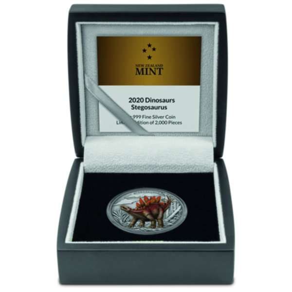 Produktinformationen "2 Dollar Stegosauraus - Antique Finish Design Silber"