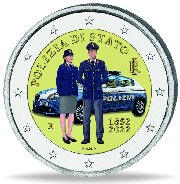 Produktinformationen "2 Euro Polizia di Stato mit Farbapplikation"