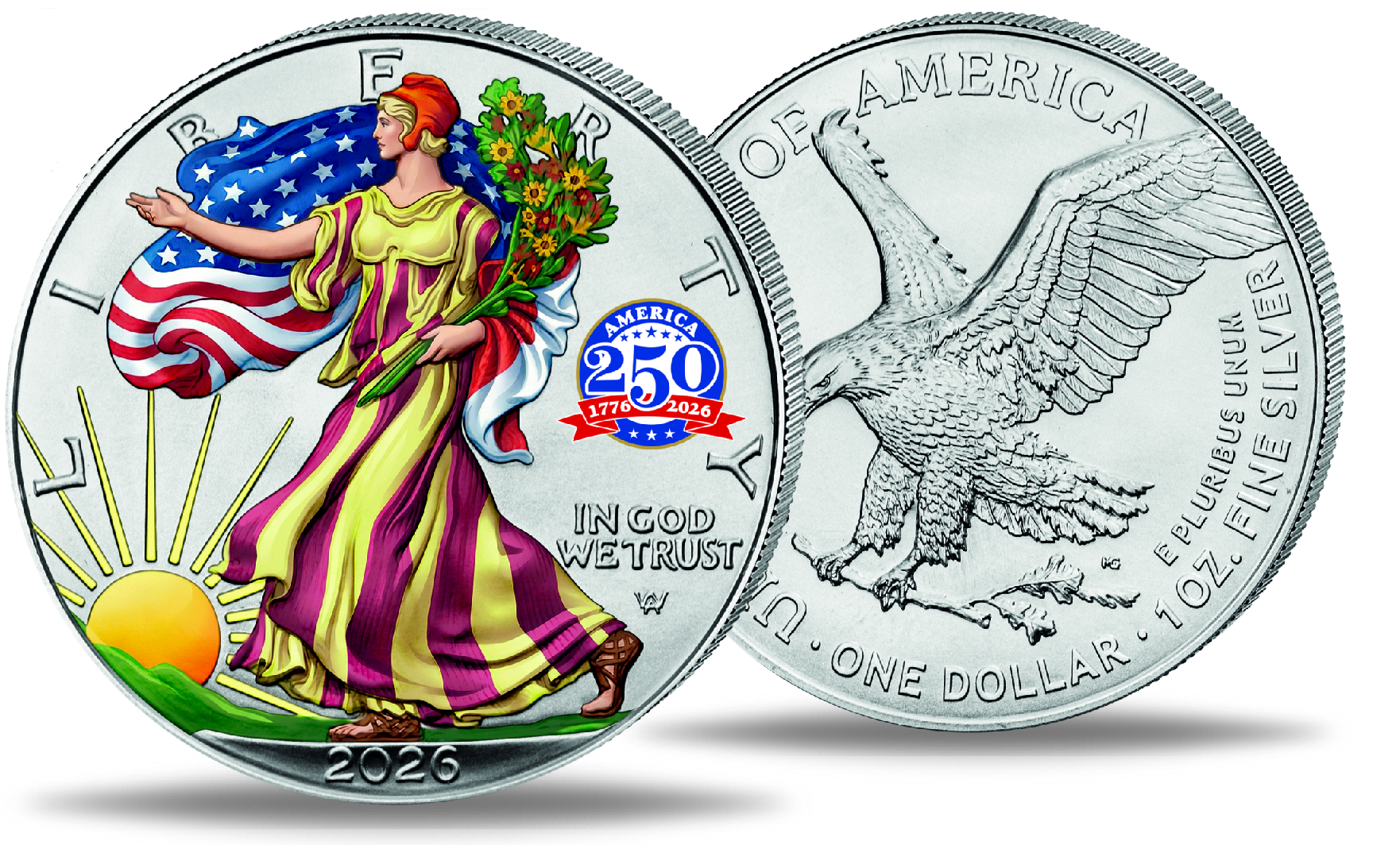 Produktinformationen "2 x 1 $ Eagle Satz, Farbapplikation & Goldveredelung - 2026"