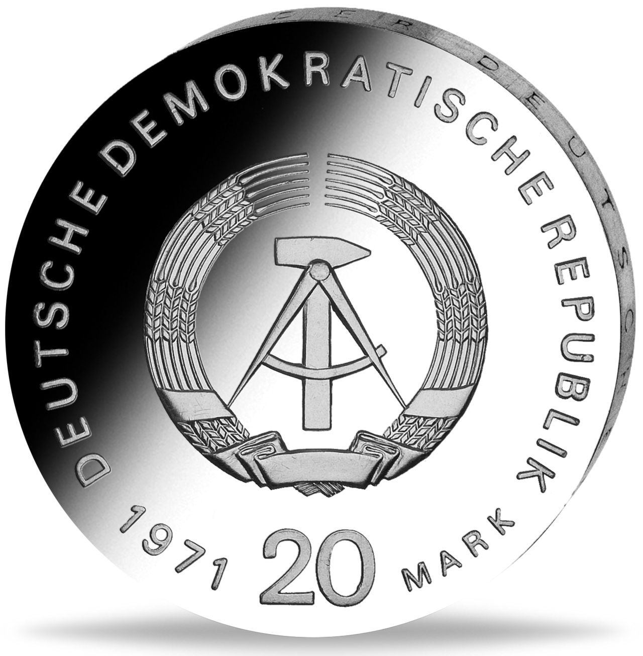 Die 20 Mark-Münze von 1971 gedenkt den beiden Führern des Spartakusbundes. Sie zeigt sie im Profil nach links schauend, umrahmt von ihren Namen. Sie hat einen Durchmesser von 31,0 mm und besteht aus 625er Silber. Im Laufe der Jahre sind beinahe die Hälfte der Münzen wieder eingeschmolzen worden. Sie gehört zu einem der interessantesten Sammelgebiete der deutschen Münzgeschichte- der DDR.