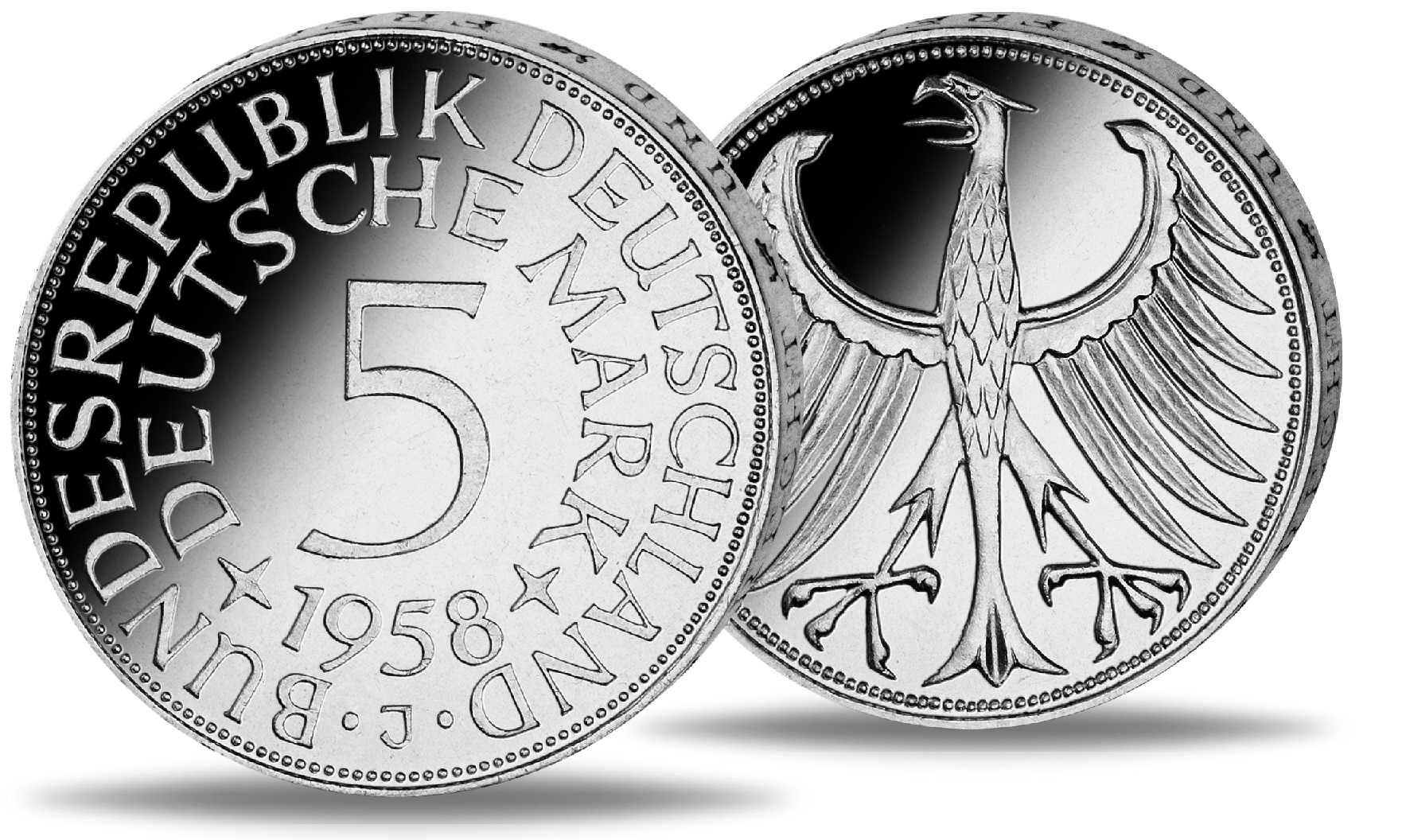 Echte Zeugen dieser Zeit sind die legendären 5,-DM-Silberkursmünzen. Im Volksmund liebevoll Silberadler oder Heiermann genannt, sind sie sicherlich auch Ihnen ans Herz gewachsen. Längst sind sie zum Symbol des deutschen Wirtschaftswunders und der Stärke der Deutschen Mark geworden.