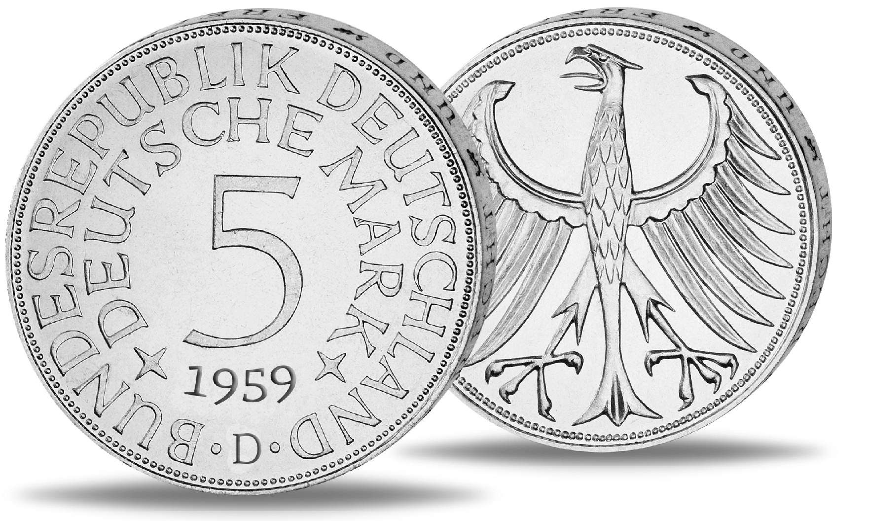 Echte Zeugen dieser Zeit sind die legendären 5,-DM-Silberkursmünzen. Im Volksmund liebevoll Silberadler oder Heiermann genannt, sind sie sicherlich auch Ihnen ans Herz gewachsen. Längst sind sie zum Symbol des deutschen Wirtschaftswunders und der Stärke der Deutschen Mark geworden.