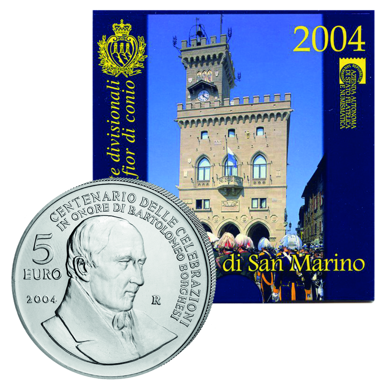 Produktinformationen "8,88 Euro-Kursmünzensatz mit 1 Cent - 2 Euro plus 5 Euro-Sammlermünze in Silber Borghesi"