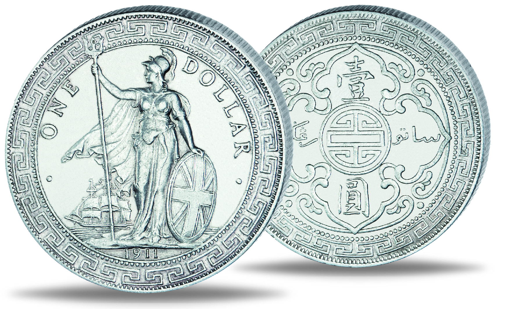 Britannia mit Helm in der Athene-Gestalt mit Dreizack und Schild – vornehmlich geprägt für den Südost- und Ostasien-Handel !
