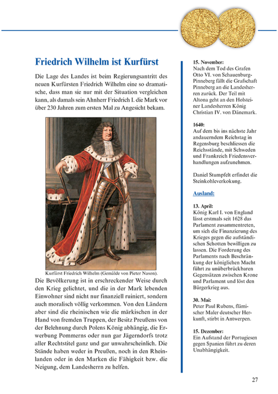 Erleben Sie die Zeit Brandenburg-Preußens im Ringen um die Erlangung der Unabhängigkeit Preußens anhand der Goldmünzen dieser Zeit mit!