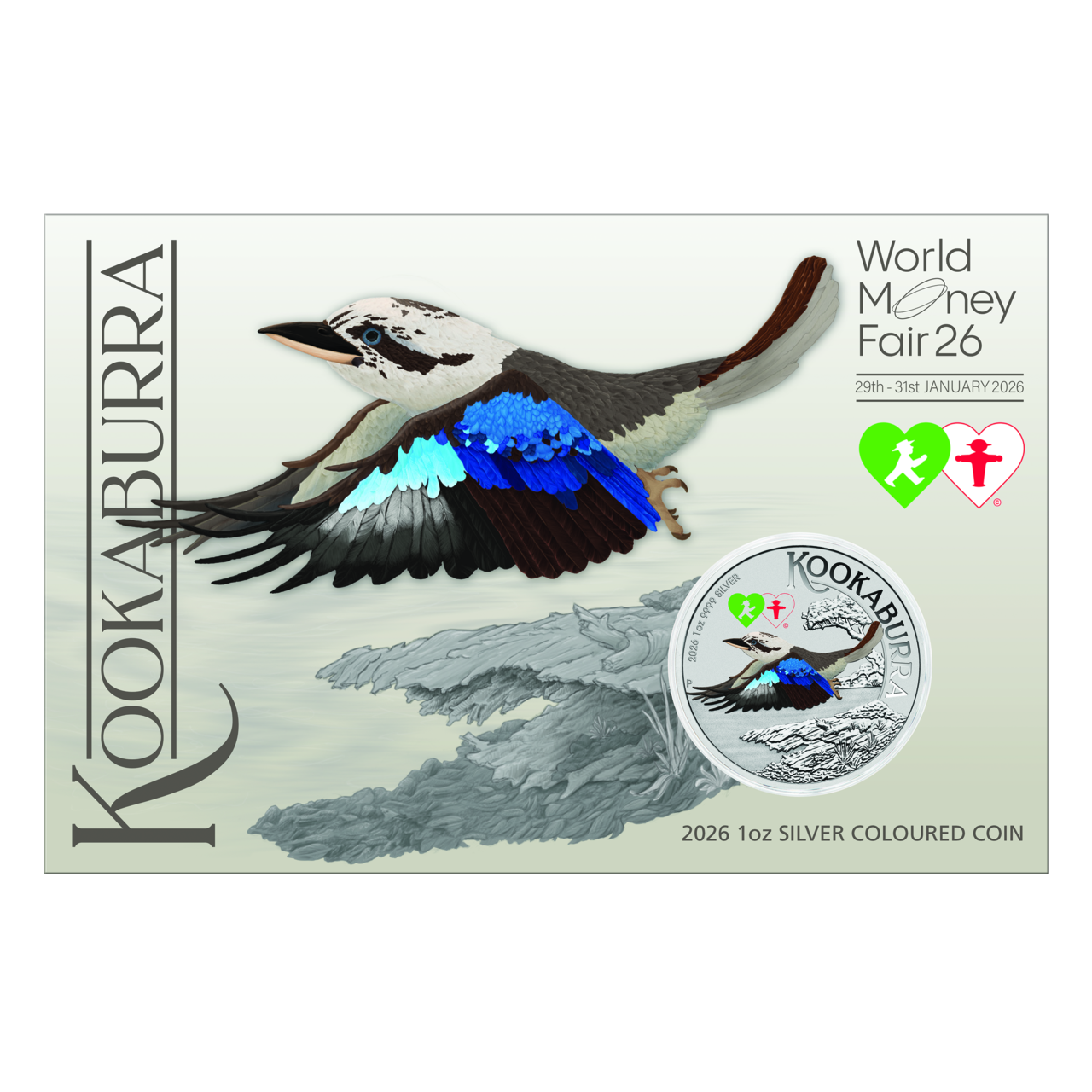 Produktinformationen "Australien, 1 $ Kookaburra World Money Fair-Sonderausgabe 2026, Silber mit Farbapplikation, Privy Ma"
