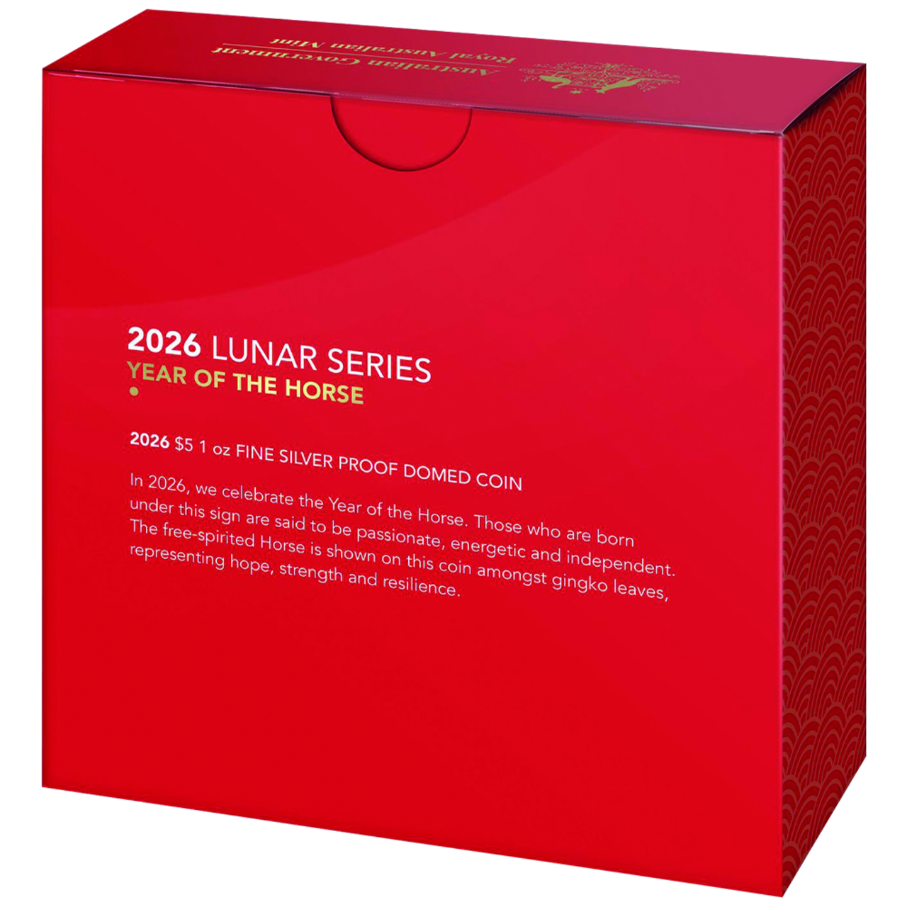 Produktinformationen "Australien, 5 Dollar Jahr des Pferdes, 1 Unze Silber - Dome Shaped, PP"