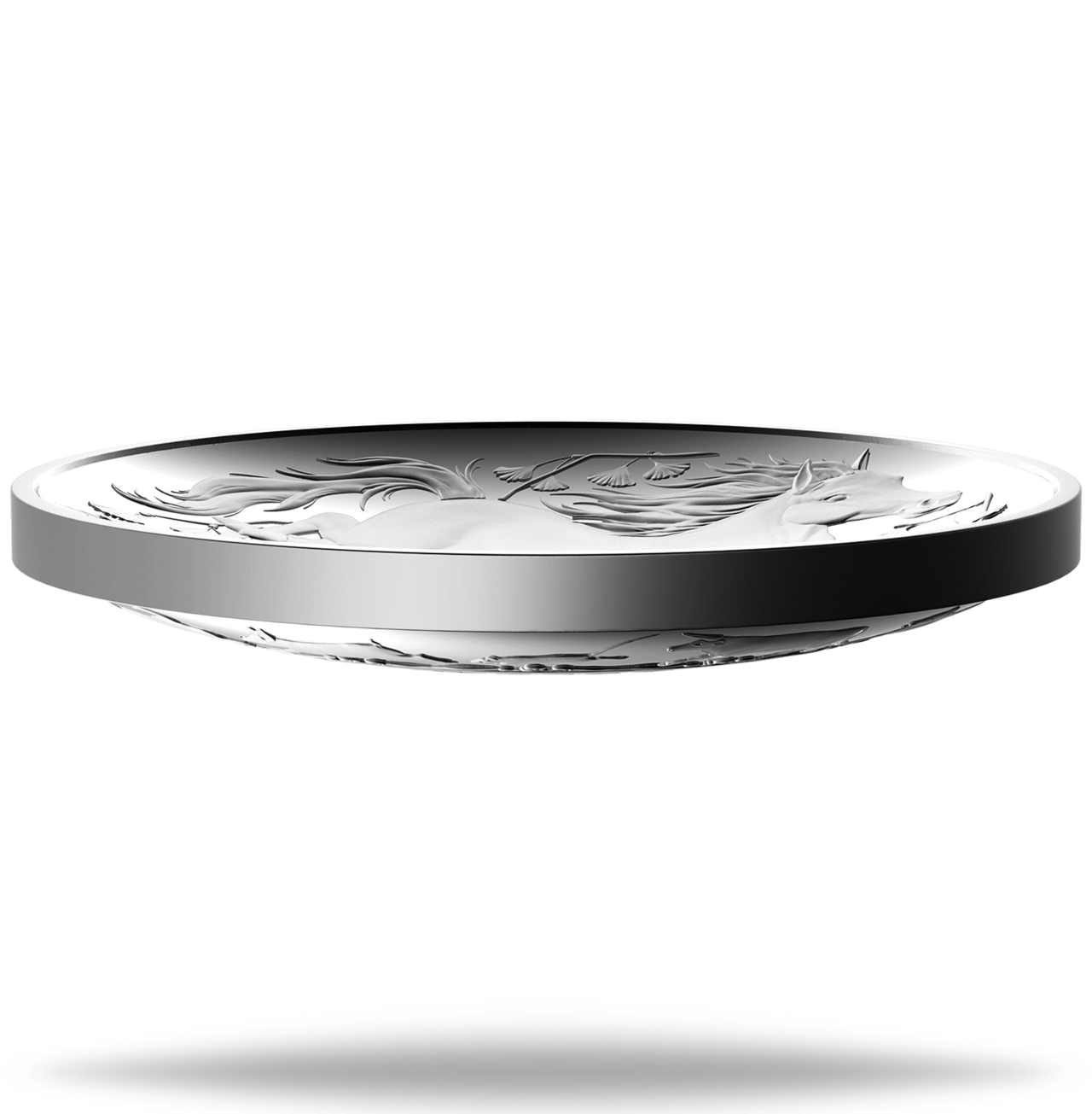 Die gewölbte Form („Dome Shaped“) verleiht dieser Silbermünze eine faszinierende Tiefe !
