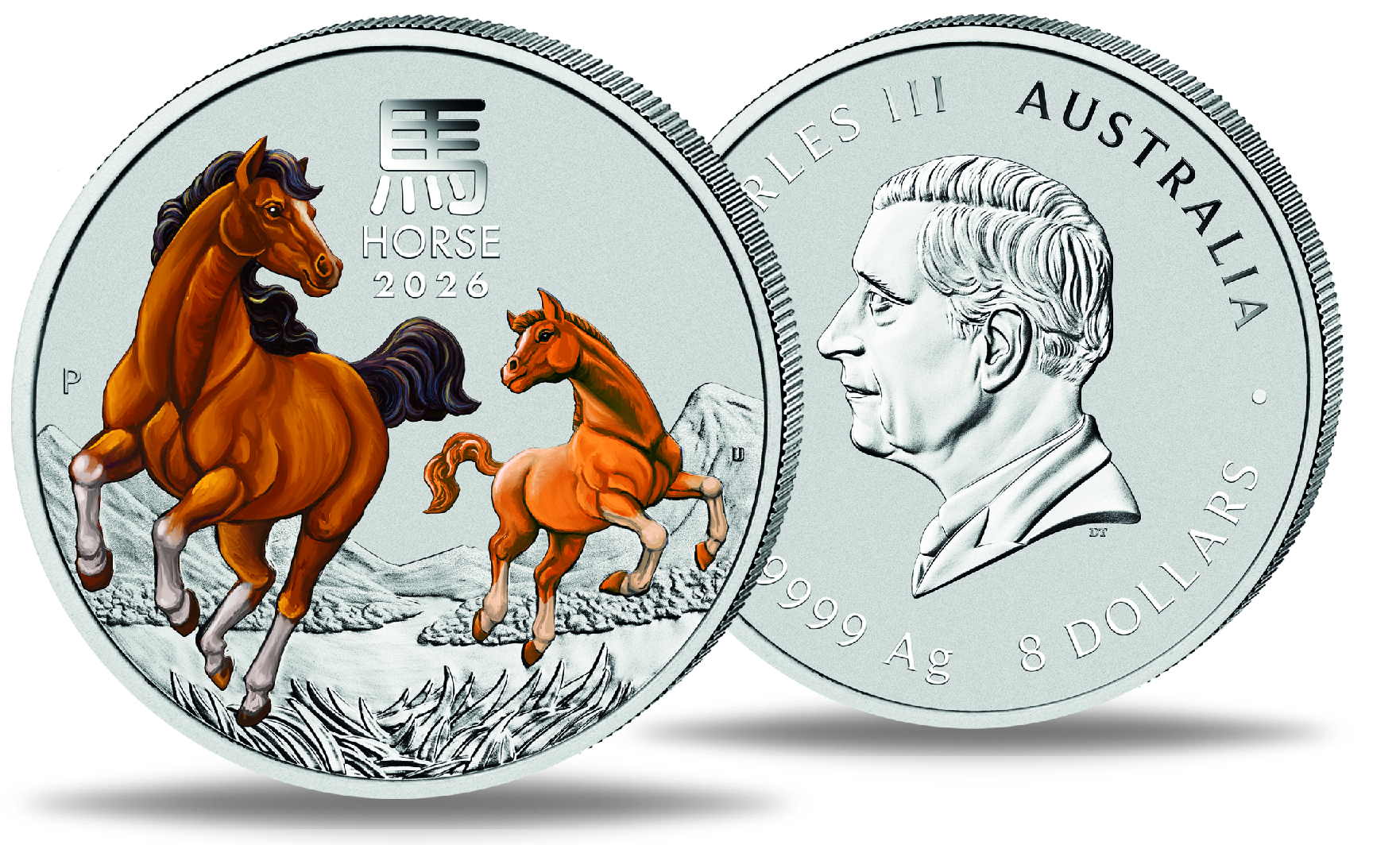 Produktinformationen "Australien, 8 Dollar 'Lunar III, Jahr des Pferdes', 5 Unzen Silber mit Farbveredelung - 2026"