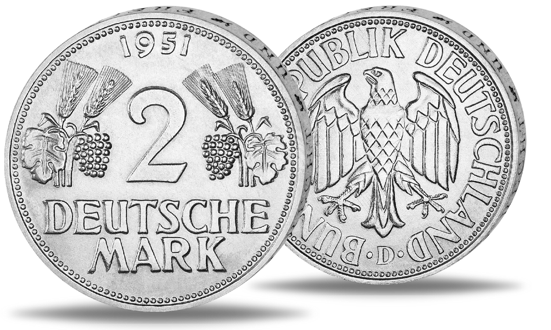 Aufgrund ihrer Ähnlichkeit mit der 1 DM-Münze wurde die 2 DM bereits 1958 wieder aus dem Verkehr gezogen !