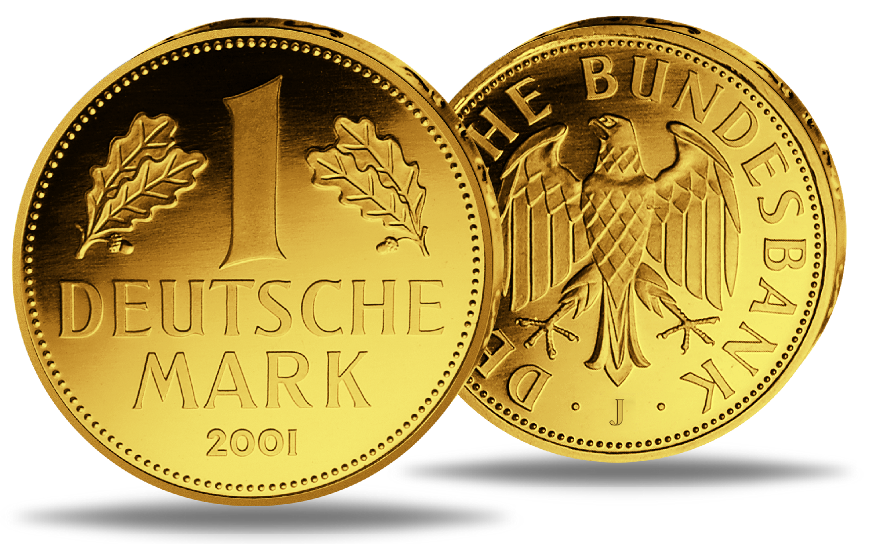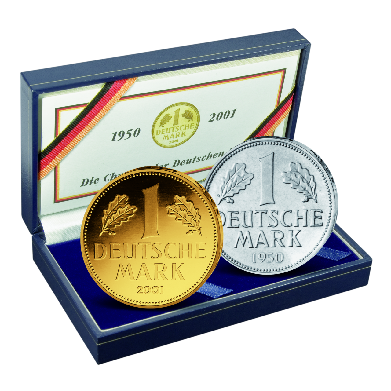 Einzigartiger 2er-Satz mit der ersten und letzten D-Mark in Gold !
