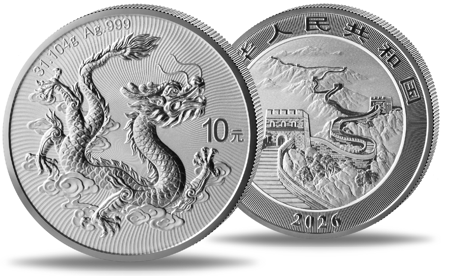 China, 10 Yuan Chinese Dragon 1 oz Ag 2026