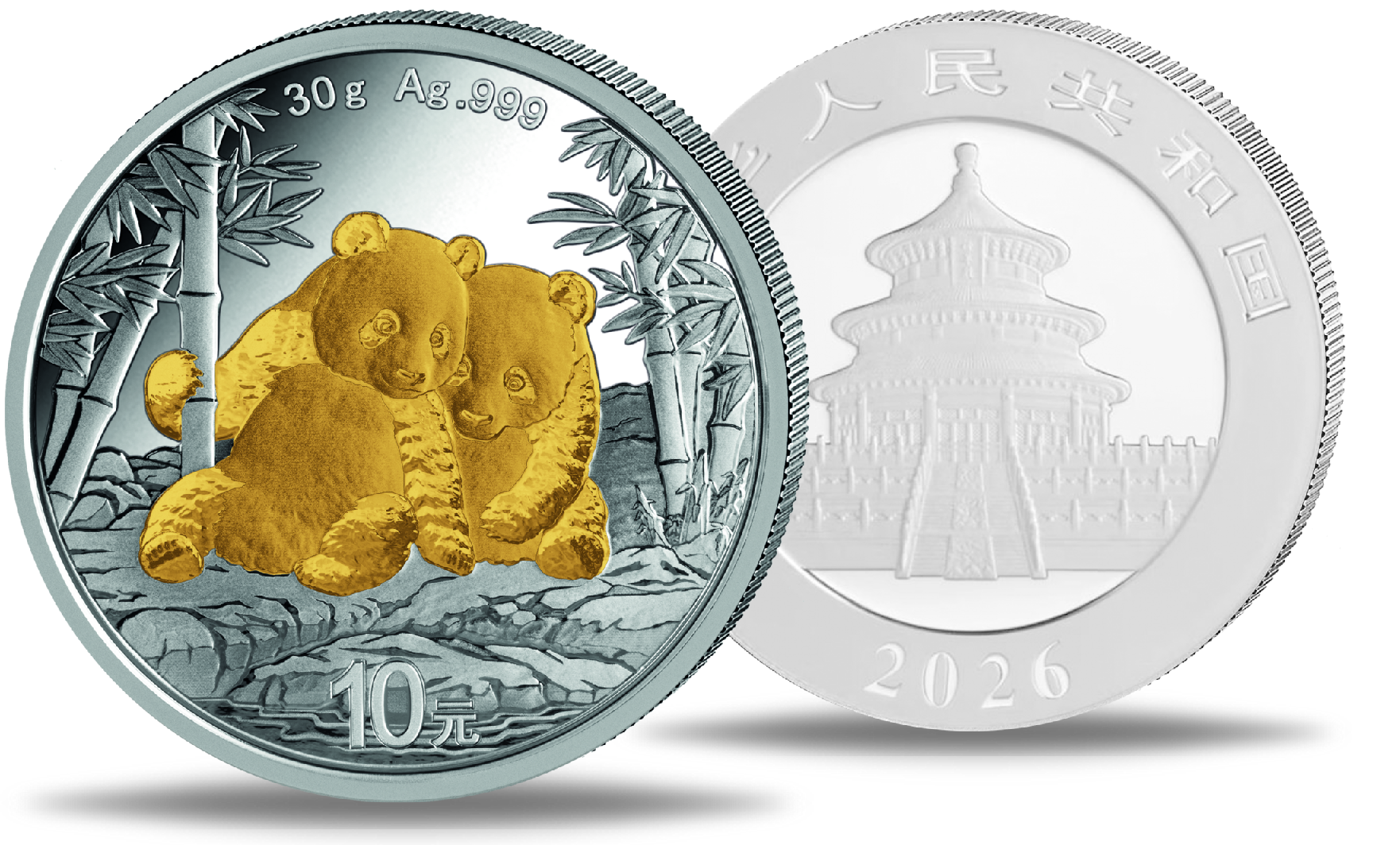 Produktinformationen "China, 10 Yuan Panda 30 g Silber mit Goldveredelung 2026"