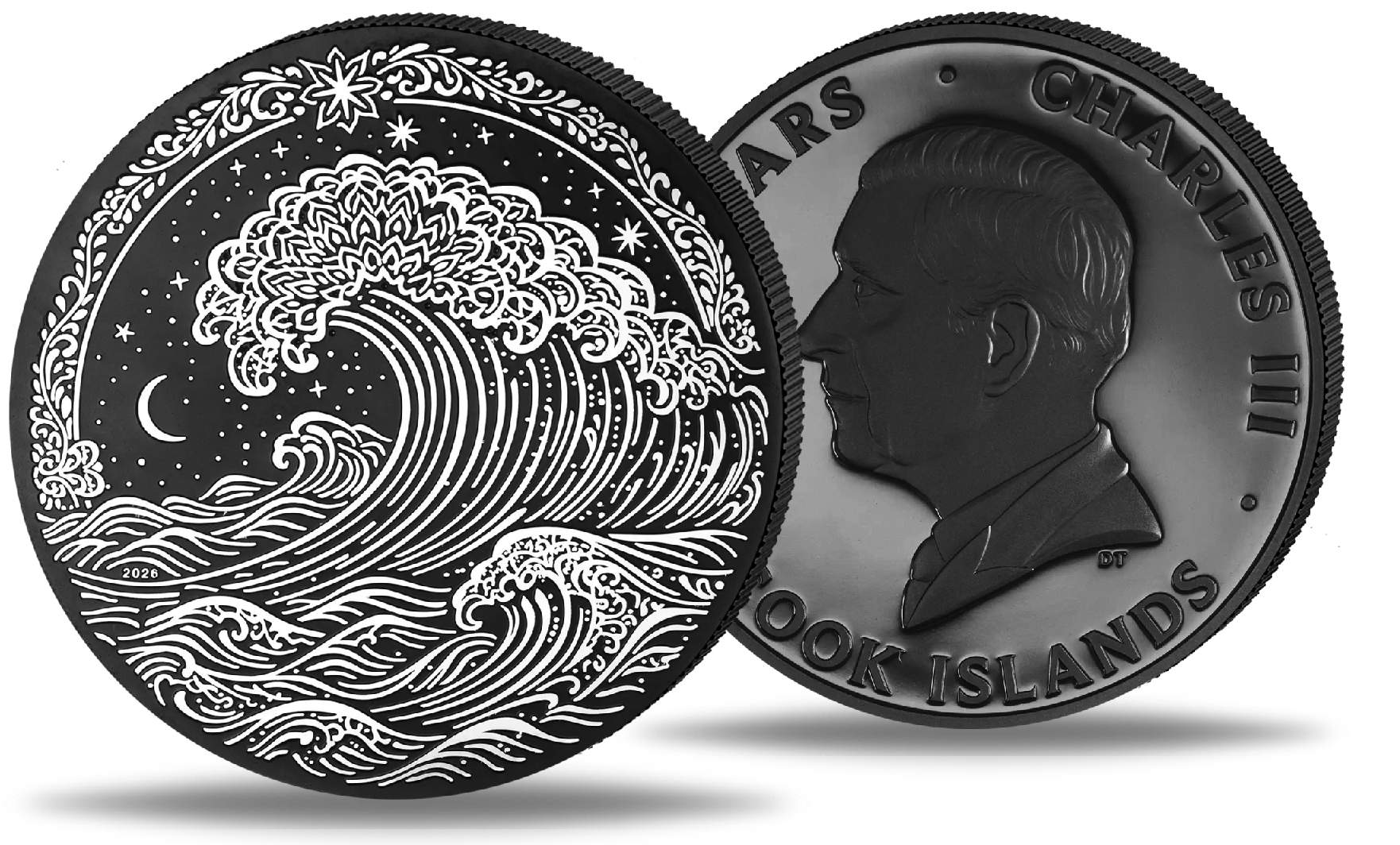 Cook Islands, 5 Dollars 2026, Giant Wave, 1 oz Ag Obsidian Black Finish - Silber