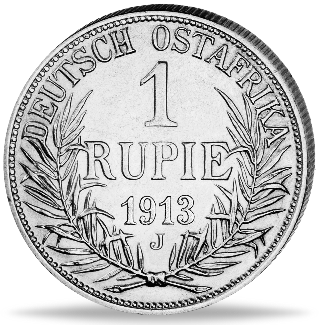 Produktinformationen "Deutsch-Ostafrika, 1 Rupie 1913 „Palmzweige - J“ (J.722), Kaiser Wilhelm II. - Silber"