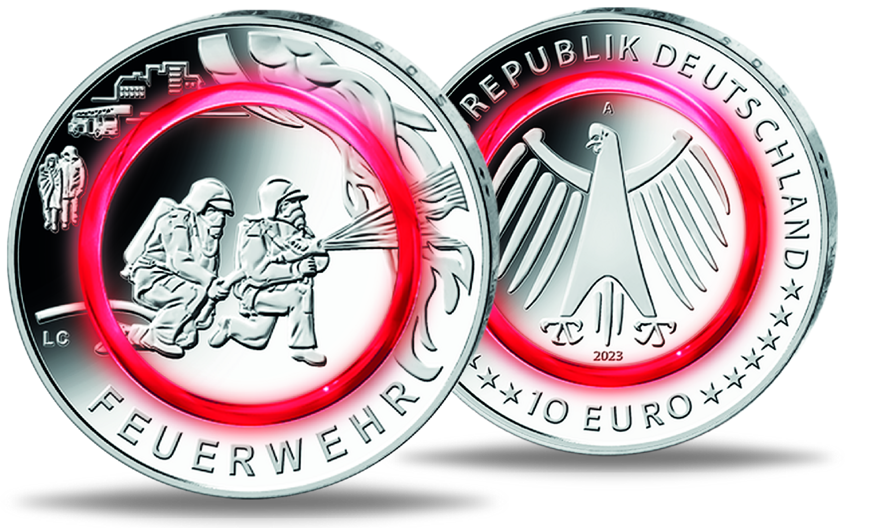 Deutsche 10 €-Serie „Im Dienst der Gesellschaft“ — Ausgabe 2023 „Feuerwehr mit rotem Polymerring