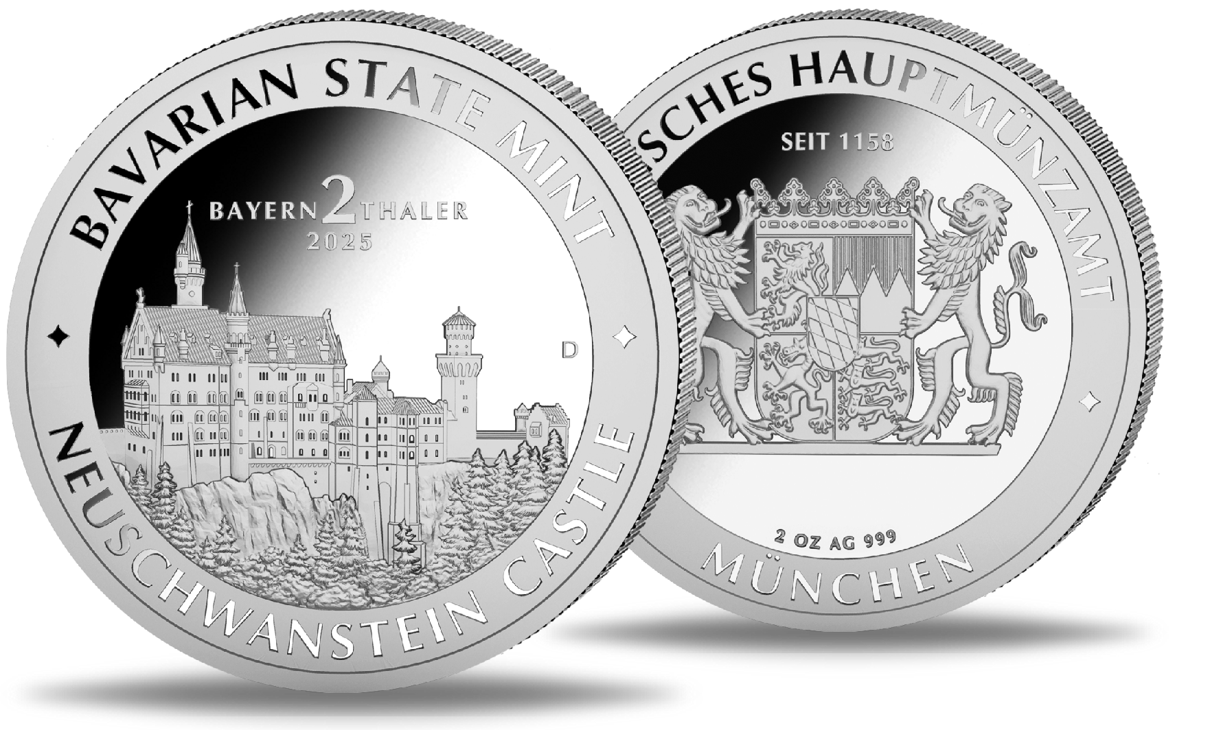 Der „Bayern-Thaler“ mit Schloss Neuschwanstein als Motiv erstmals als High Relief-Prägung !