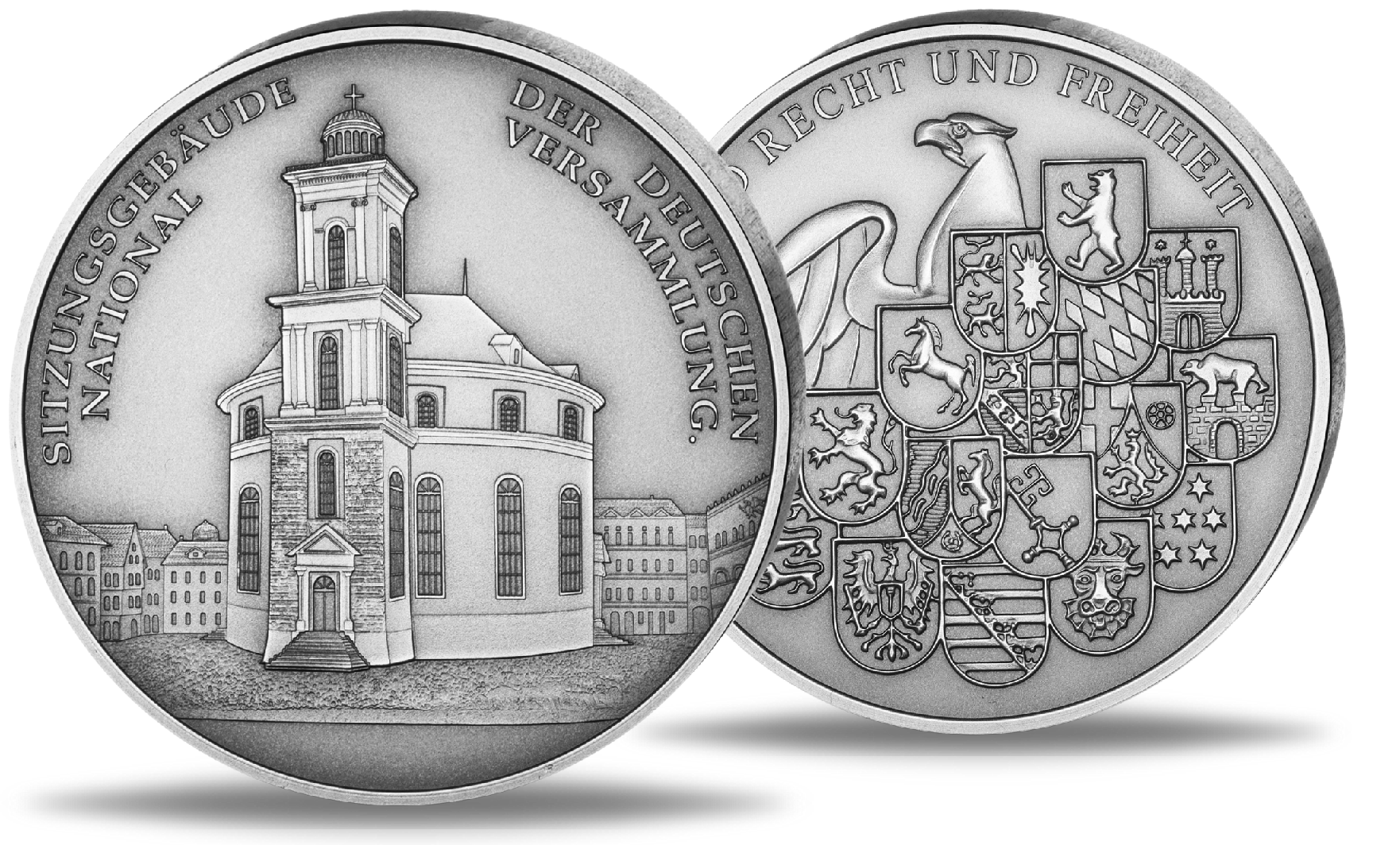 Die Paulskirche selbst gilt als eines der bedeutendsten politischen Bauwerke Deutschlands. Am 18. Mai 1848 trat hier die erste gesamtdeutsche Nationalversammlung zusammen – ein historischer Moment auf dem Weg zu einem geeinten und demokratischen Staat. Auch wenn die Revolution von 1848 letztlich scheiterte, legte sie doch wichtige Grundlagen für die spätere Entwicklung der Demokratie. Genau diese historische Bedeutung macht die Paulskirche zum idealen Motiv für die 100-Euro-Goldmünze „Einigkeit“ und wird durch diese Gedenkprägung eindrucksvoll aufgegriffen.
