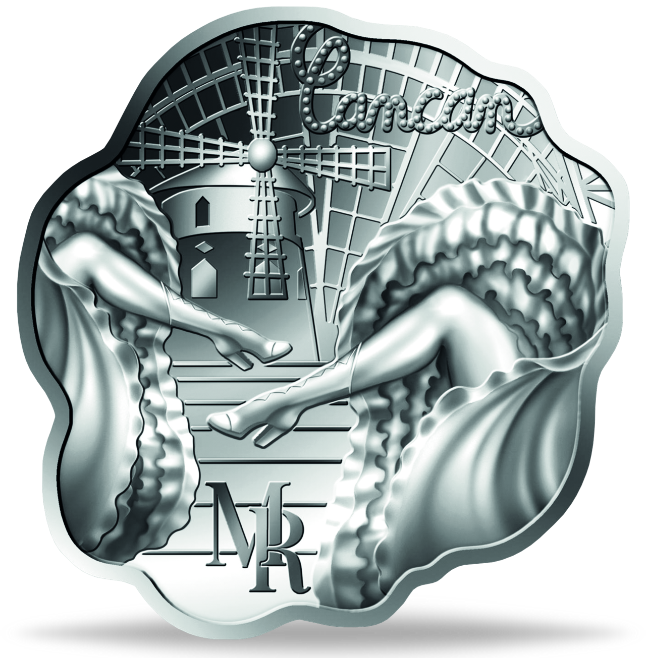 Der im „Moulin Rouge“ berühmt gewordene „Cancan“ mit seinen fliegenden Röcken ist Vorbild für die außerwöhnliche Form der Münze !