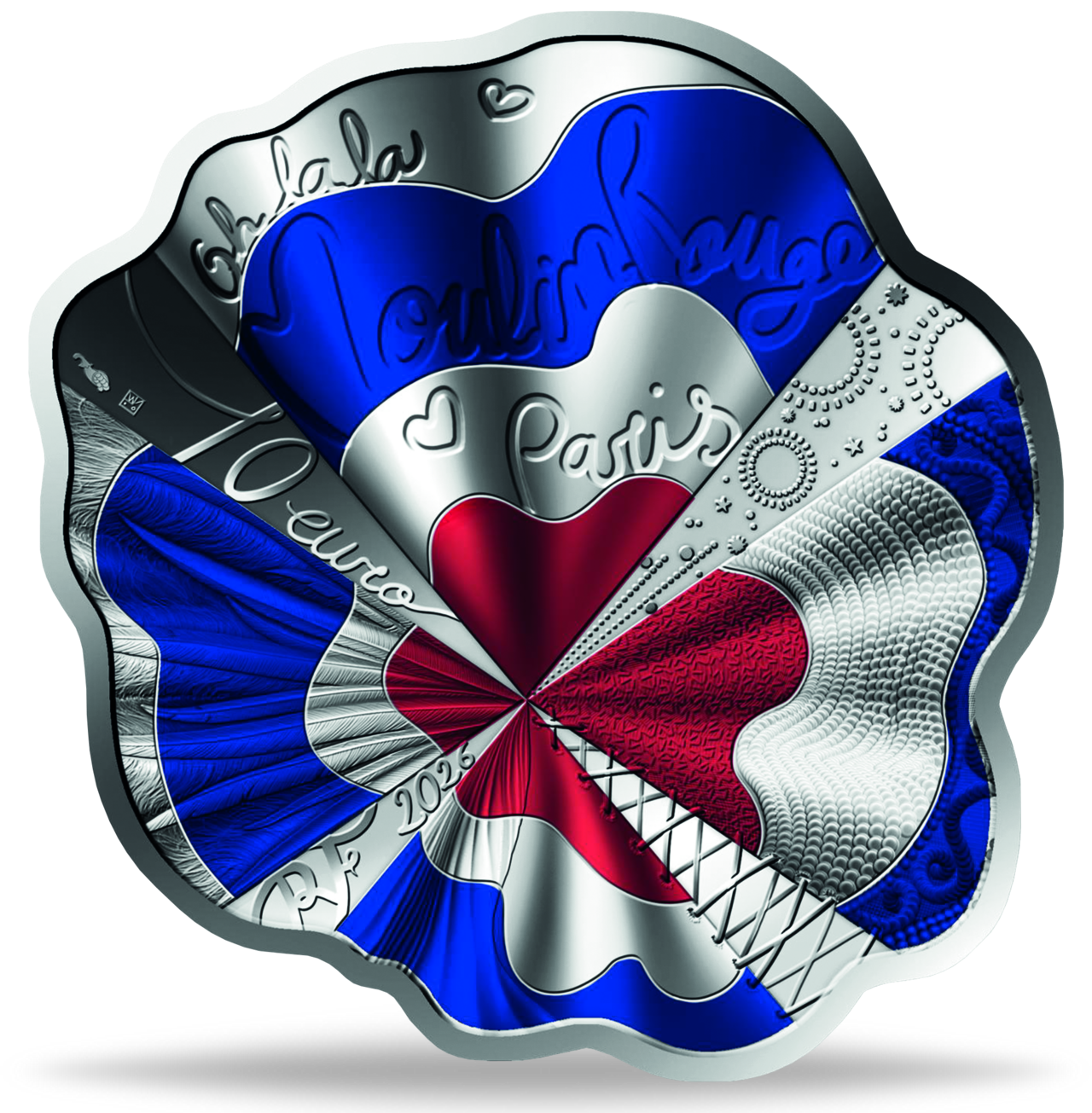Produktinformationen "Frankreich, 10 Euro Moulin Rouge Formmünze, 2026, Silber, PP, mit Farbappl. im Etui"