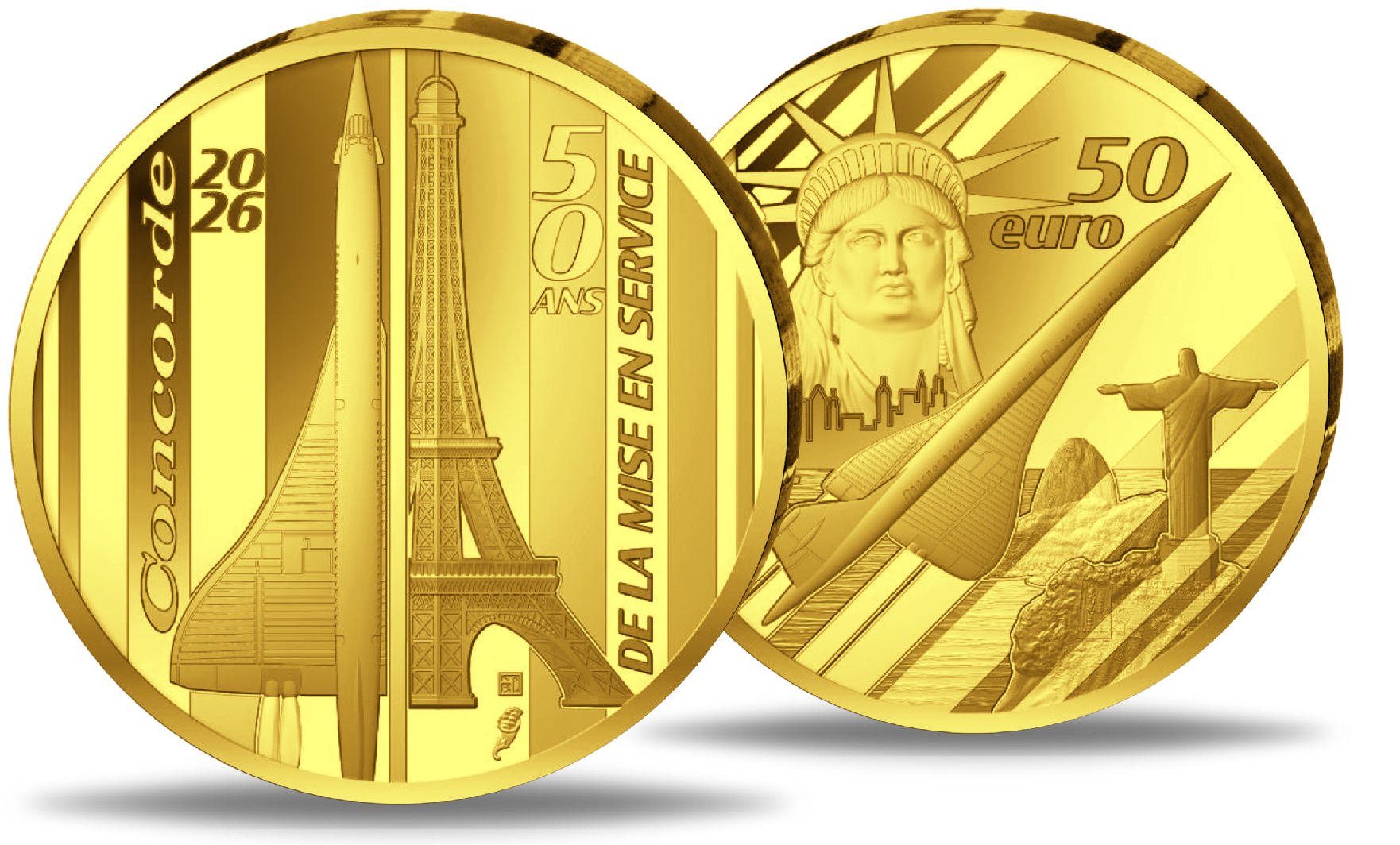 Produktinformationen "Frankreich, 50 Euro 50 Jahre Concorde, 2026, 1/4 oz Gold, PP, im Etui"