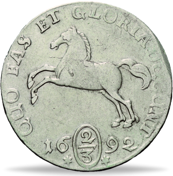 Fürstentum Braunschweig-Lüneburg-Celle, 2/3 Taler 1692 J, Fürst Georg Wilhelm - Silber