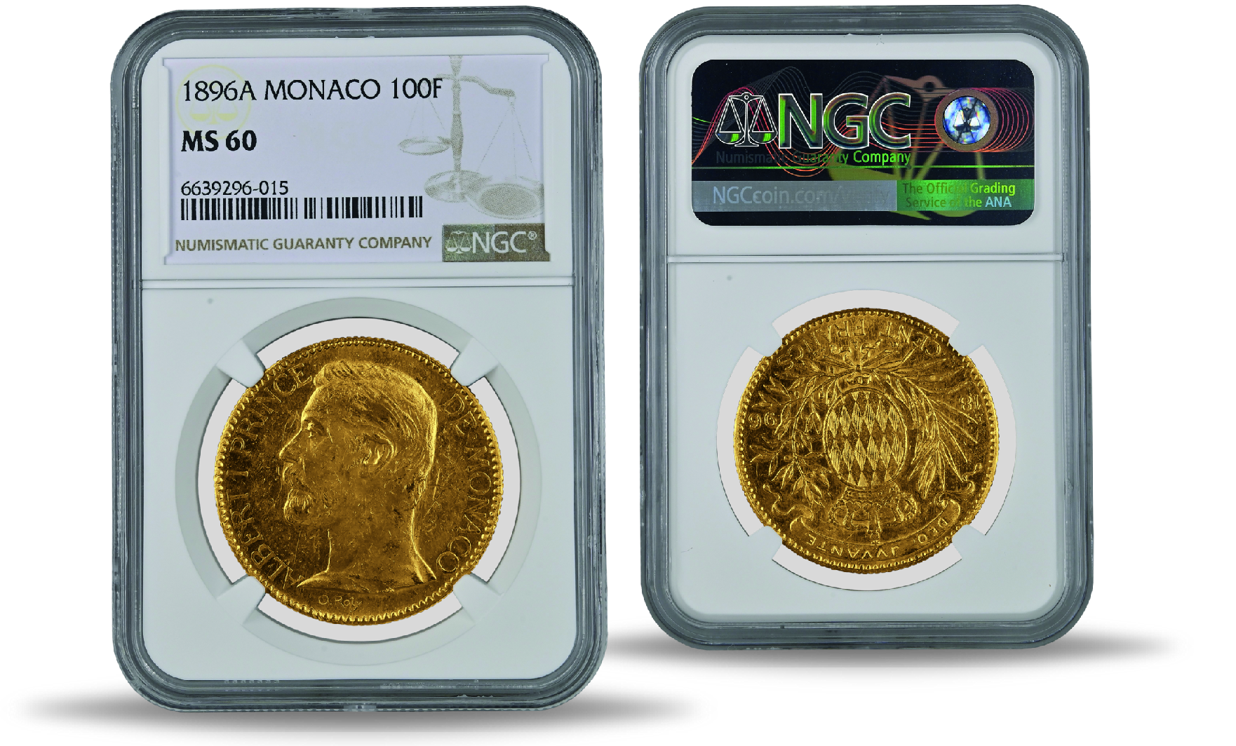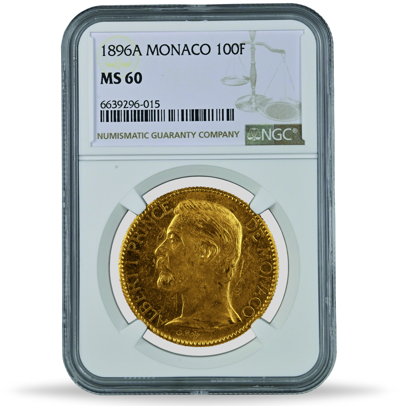 Fürstentum Monaco, 100 Francs 1896, Fürst Albert I., NGC MS-60 - Gold