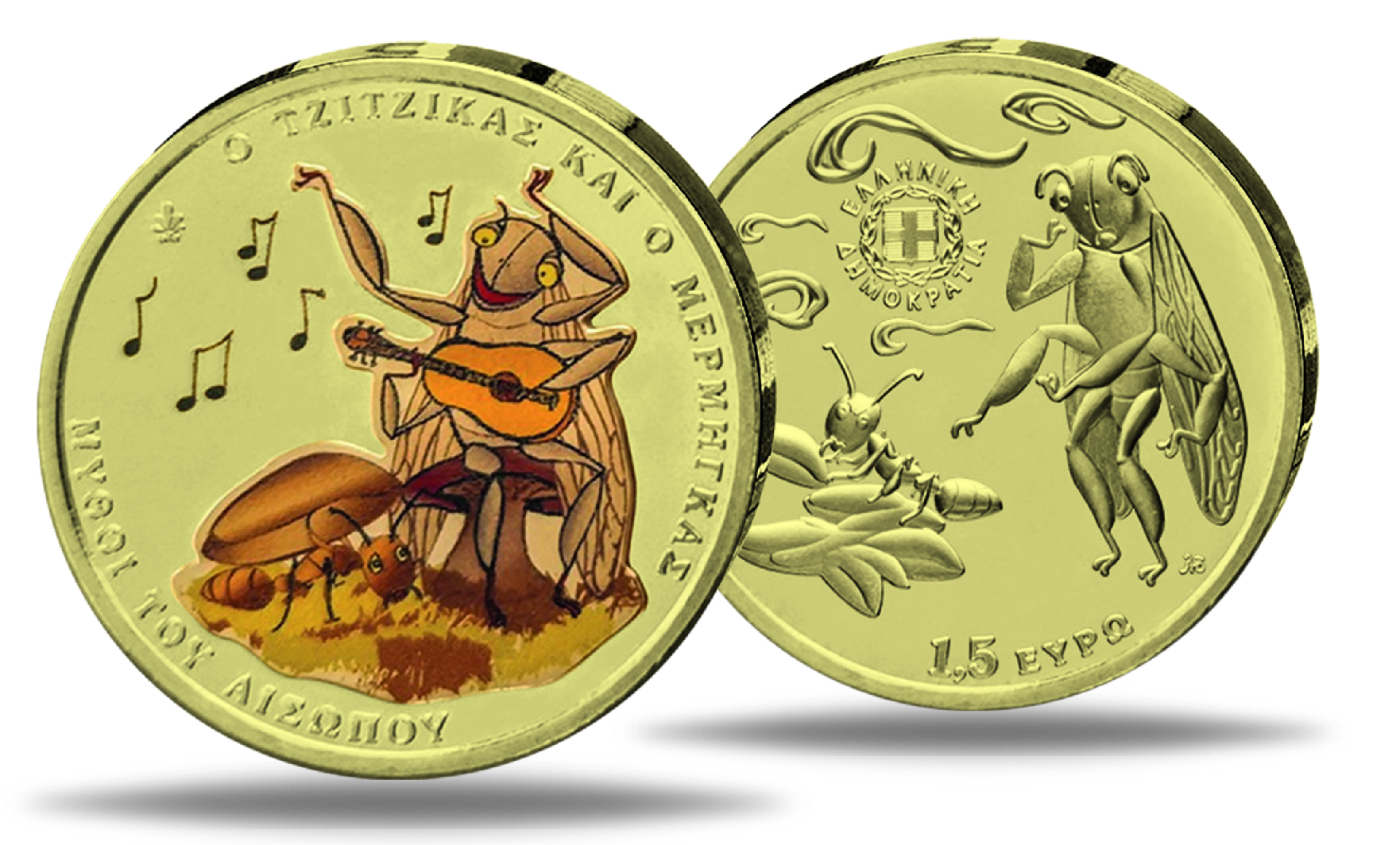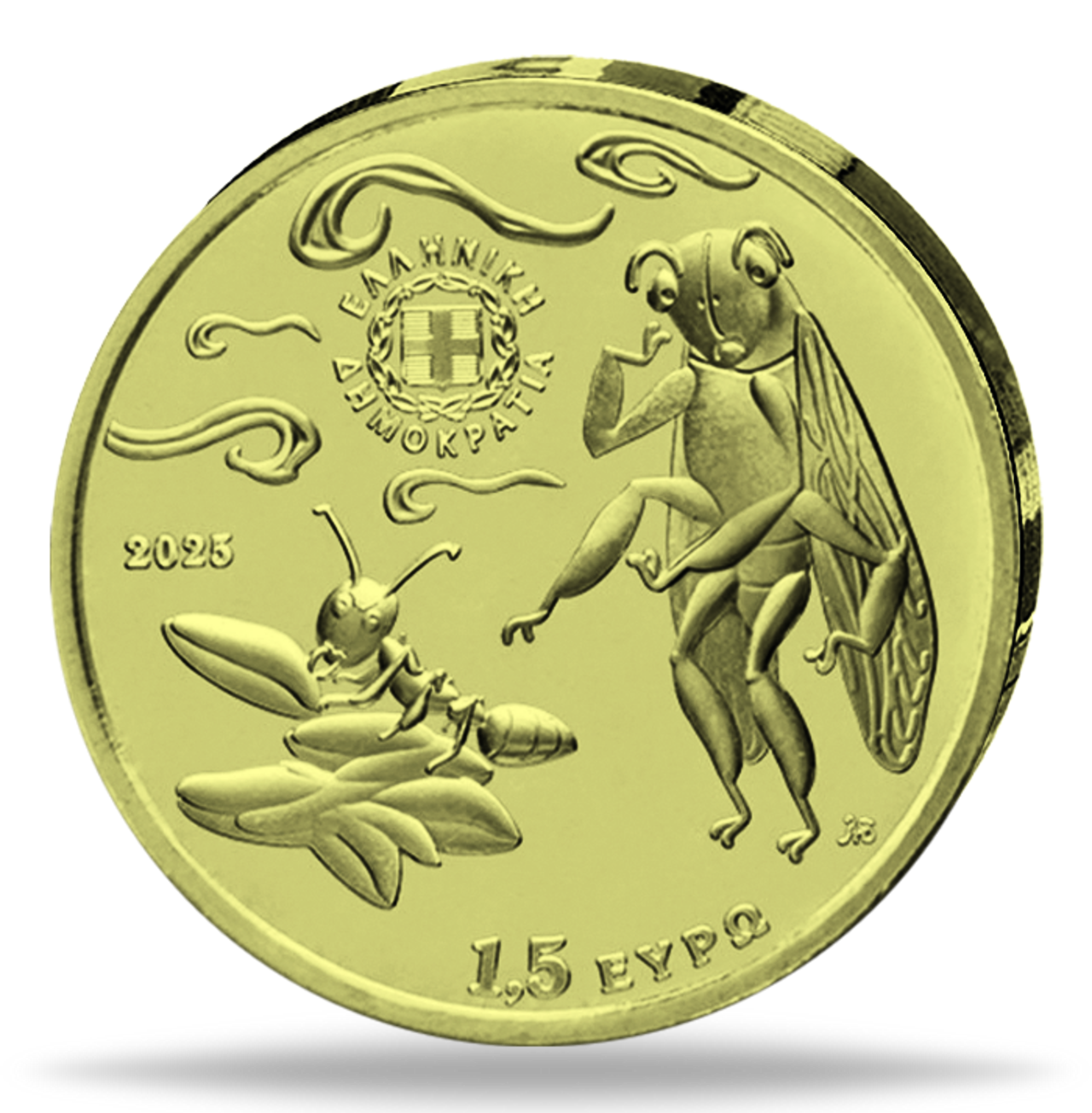 Produktinformationen "Griechenland, 1,5 € Die Zikade und die Ameise, 2025, bfr. mit Farbapplikation"