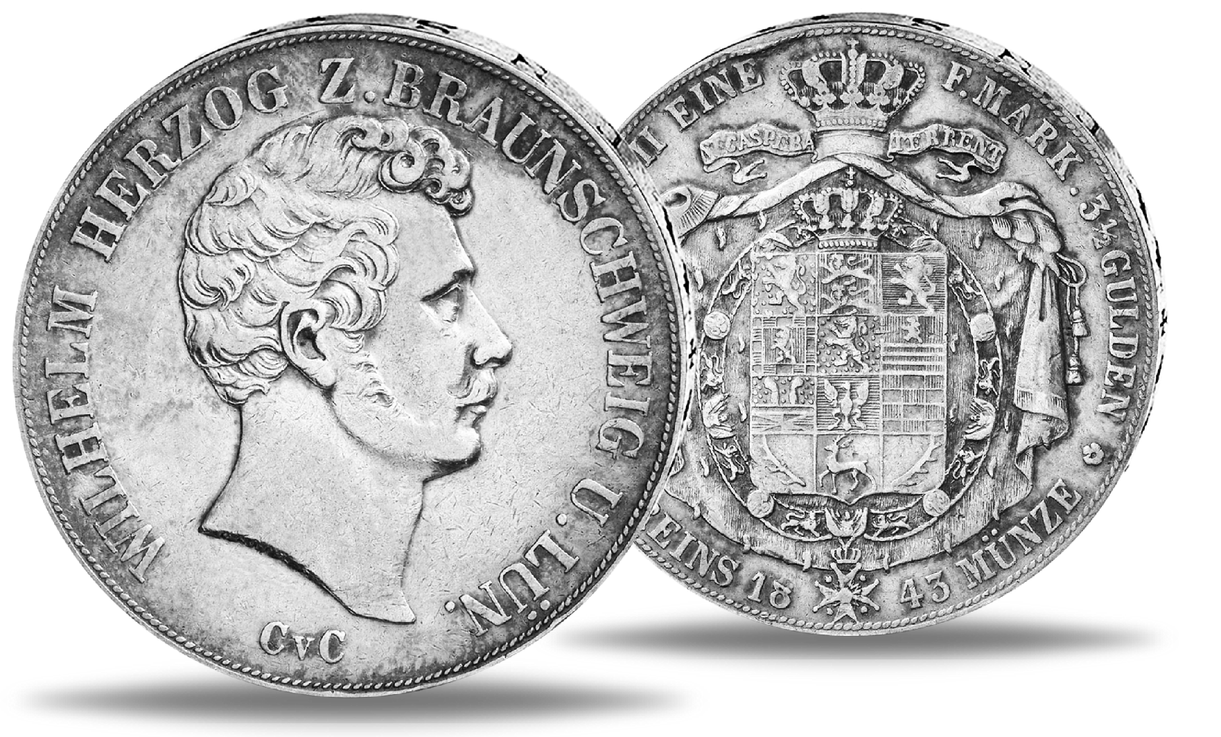 Herzogtum Braunschweig, Doppeltaler 1843, Herzog Wilhelm - Silber