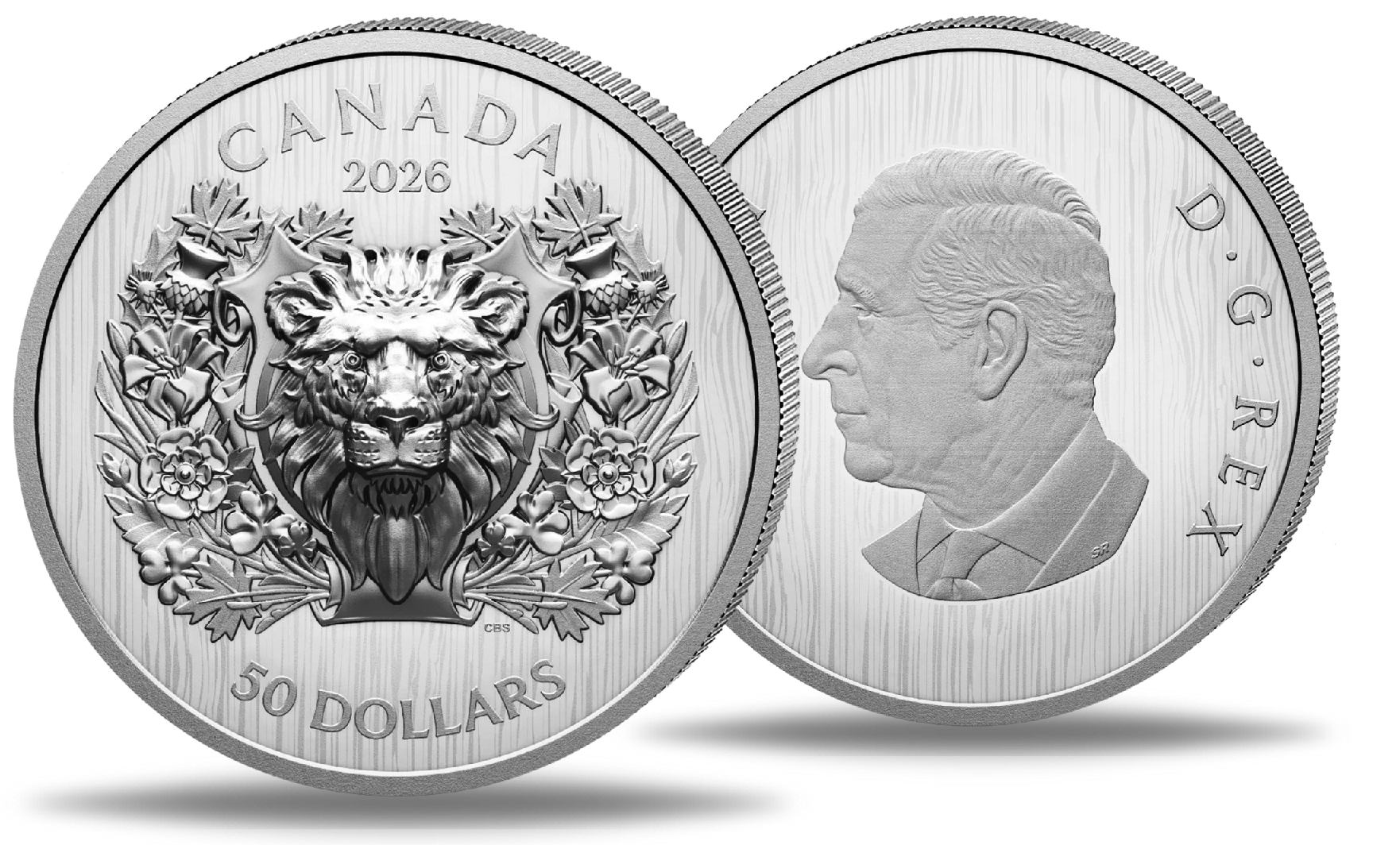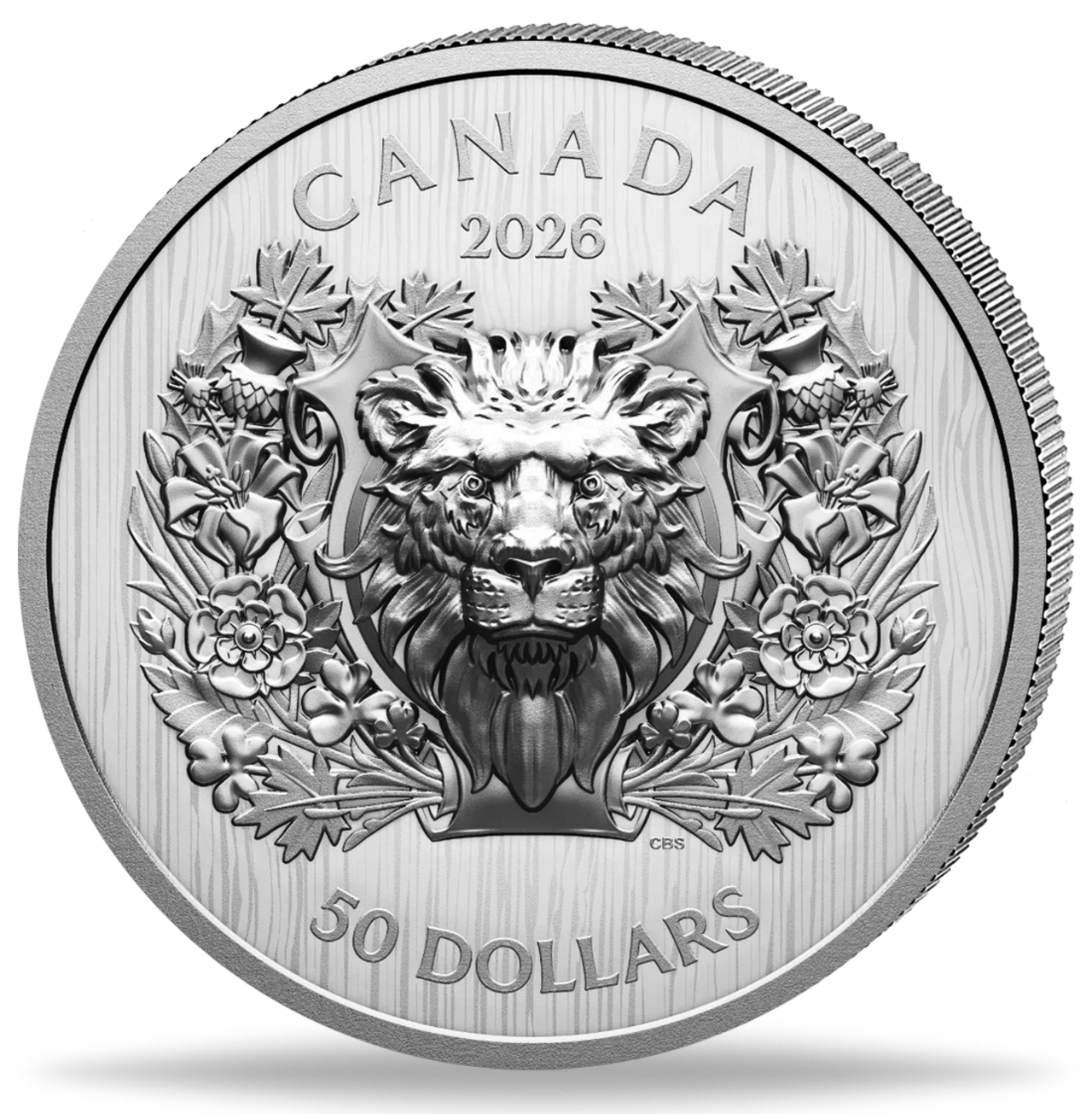 Produktinformationen "Kanada, 50 CAN-$ Heraldic Lion 2026, 2 Unzen Silber High Relief"