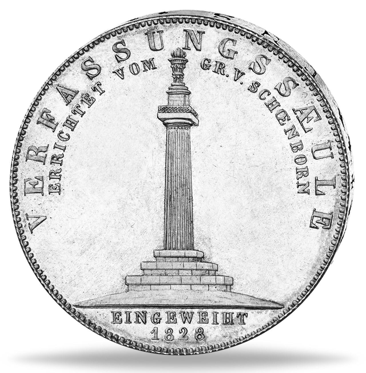 Königreich Bayern, Geschichts-Taler 1828 (T.55), Verfassungssäule, König Ludwig I. – Silber