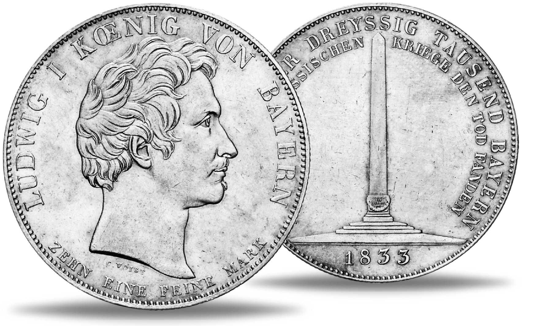 Königreich Bayern, Geschichtstaler 1833 (Thun 62), Denkmal Russland-Krieg, König Ludwig I. - Silber