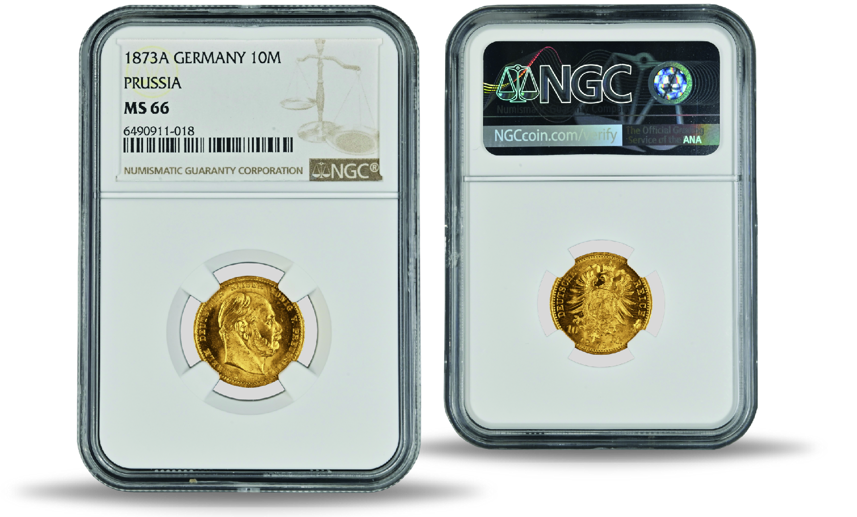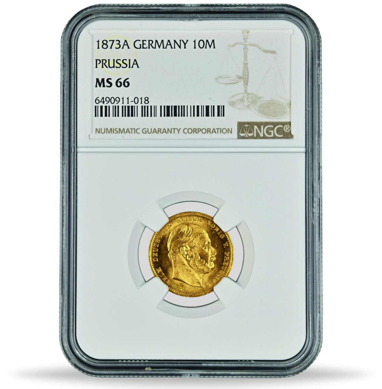 Produktinformationen "Königreich Preußen, 10 Mark 1873 (J.242), Kaiser und König Wilhelm I.. NGC MS-66 - Kaiserreich Gold"