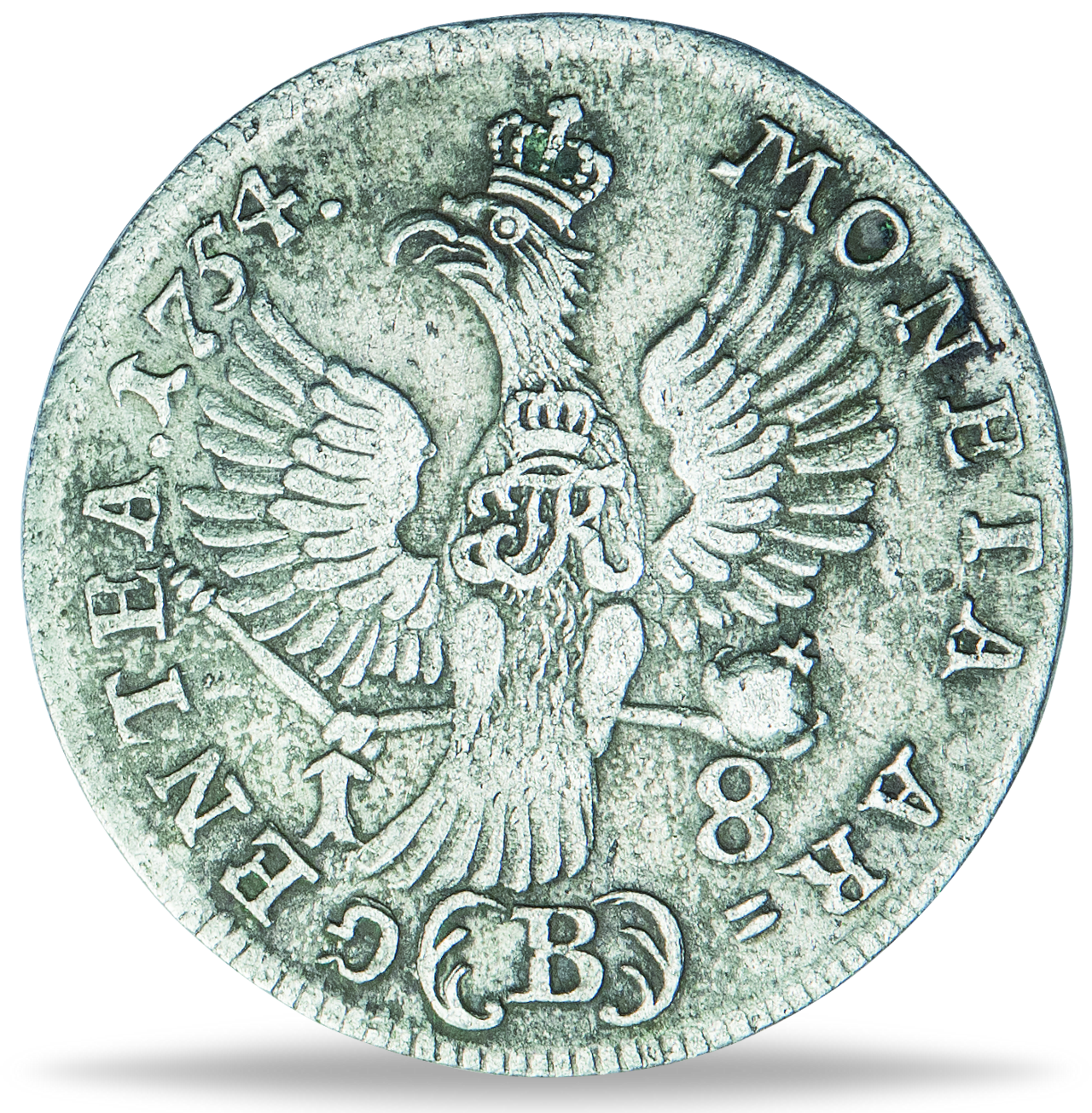 Der seltene Münzsatz besteht aus zwei 6-Gröscher-Münzen aus den Jahren 1753-1763 und 1754-1763 sowie einer prachtvollen 18-Gröscher-Münze, die Friedrich mit Krone zeigt, geprägt zwischen 1751 und 1765. Jede dieser Gröscher-Münzen wurde aus echtem Silber gefertigt und in der Erhaltung „sehr schön“ überliefert – eine beeindruckende Qualität angesichts ihres Alters und ihrer jahrhundertelangen Umlaufgeschichte.