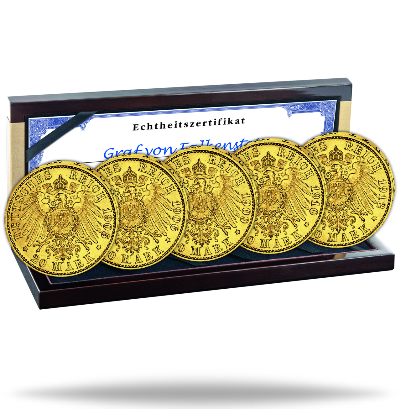 Produktinformationen "Königreich Preußen, Komplett-Kollektion 20 Mark 1905-1912 (J.252, 5 Münzen) - Deutsches Kaiserreich"