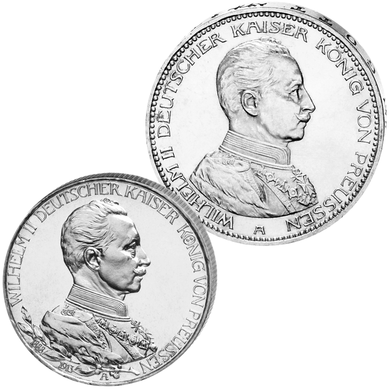 Königreich Preußen, Silber-Satz „Uniform“ (2 Mz.), Kaiser Wilhelm II. (J.111 & 114) - Kaiserreich Si